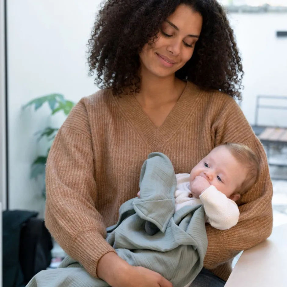 Doomoo Ammesvøb med Bidering er en unik ammeklud i muslin med flere smarte funktioner. Amme-/Nussekluden er lavet af ultrablød quiltet økologisk bomuld. Man fastgør Amme-/Nussekluden let rundt om den voksnes hals takket være silikone-ringen, som også fungerer som en bidering for de mindste for at lindre kløende tandkød under tandfrembrud.