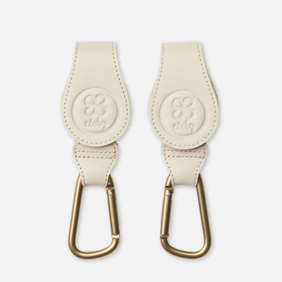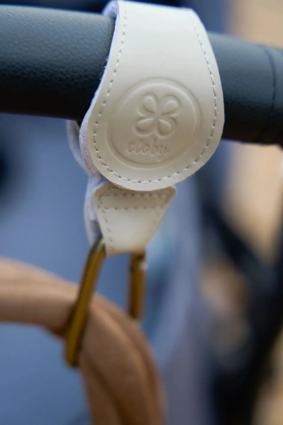 Specifikationer:Fremstillet af læder i høj kvalitetSikker velcrolukning.Universal pasform, der fungerer med alle barnevognsmodeller.Stilrent design.Krogene kan forblive fastmonteret, så de altid er klar til brug.
