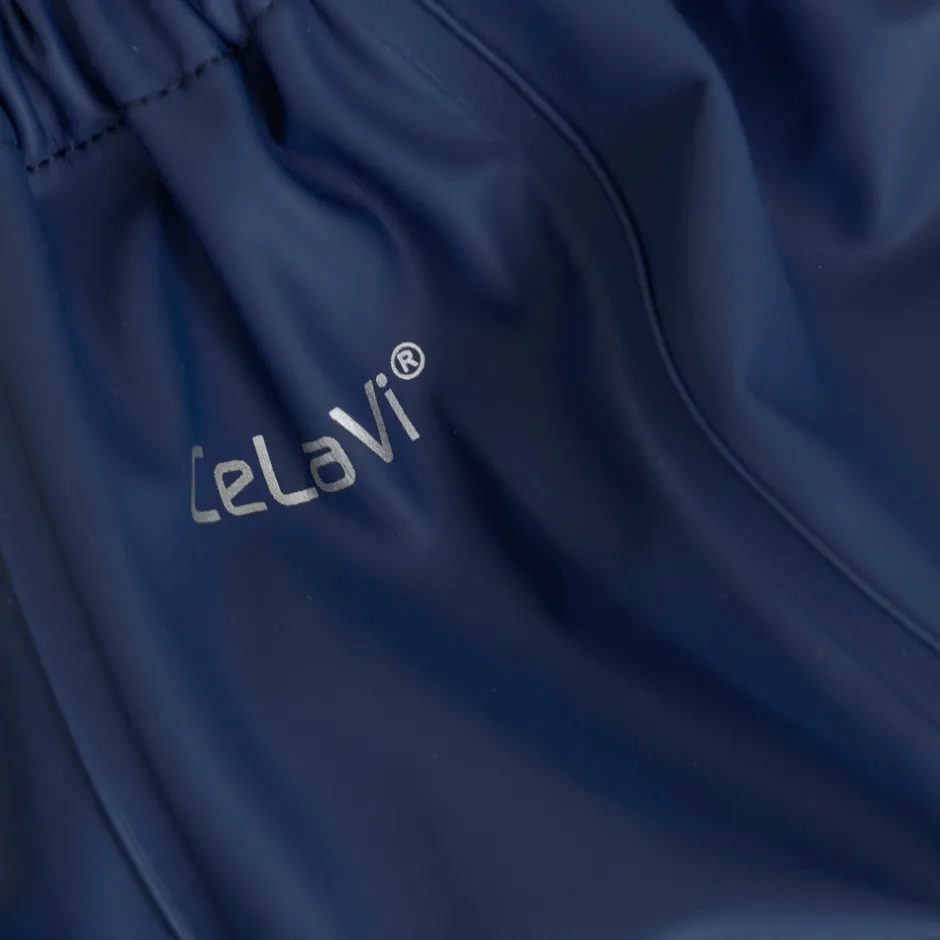 Praktisk regnsæt i PU-materiale med svejsede sømme, som sikrer vandtæthed. Ideelt til leg i regn og mudder. Justerbare stropper og elastiske detaljer for god pasform.