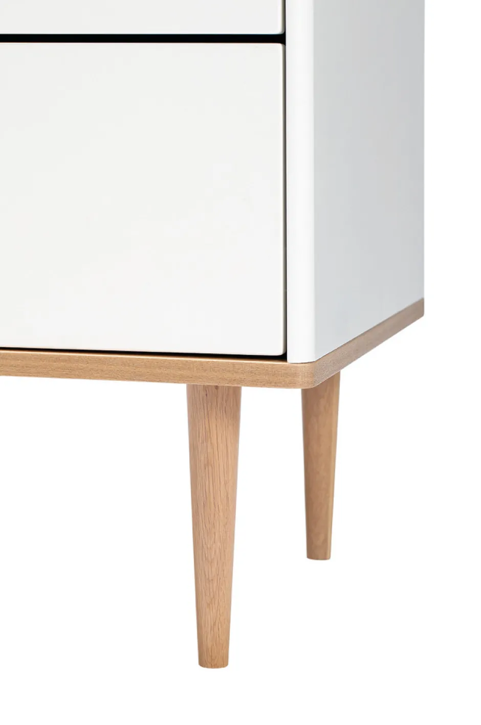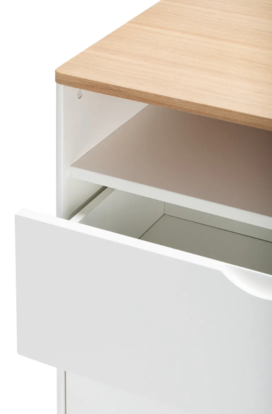 Mere end bare at pusleDesignet på Curve puslekommoden er gennemtænkt for at gøre det nemt når der skal pusles. Det åbne rum øverst er let tilgængeligt, og giver dig nem og hurtig tilgang til de mest essentielle ting man gerne vil have indenfor rækkevide. Curve har 2 store skuffer som kan rumme meget, og med udfræsede greb er de nemme at åbne. Puslepladen monteres nemt uden skruer ovenpå kommoden, og når pusletiden er forbi er pladen lige til at fjerne, og så har man stadig en kommode til opbevaring af tøjet – eller måske legetøj. Curve vil uden tvivl også løfte ethvert børneværelses naturlige stil med sine håndværksmæssige detaljer. Fra de udfræsede forførende greb i de hvidmalet fronter til de fine egetræslister og smukke egetræsben skabes der er nutidigt nordisk look.