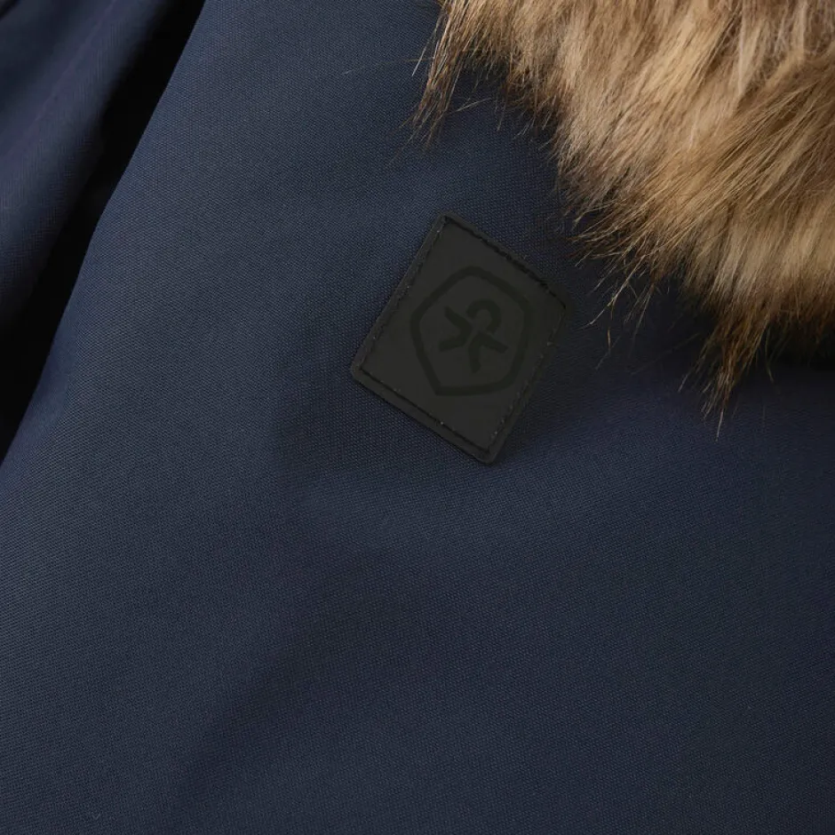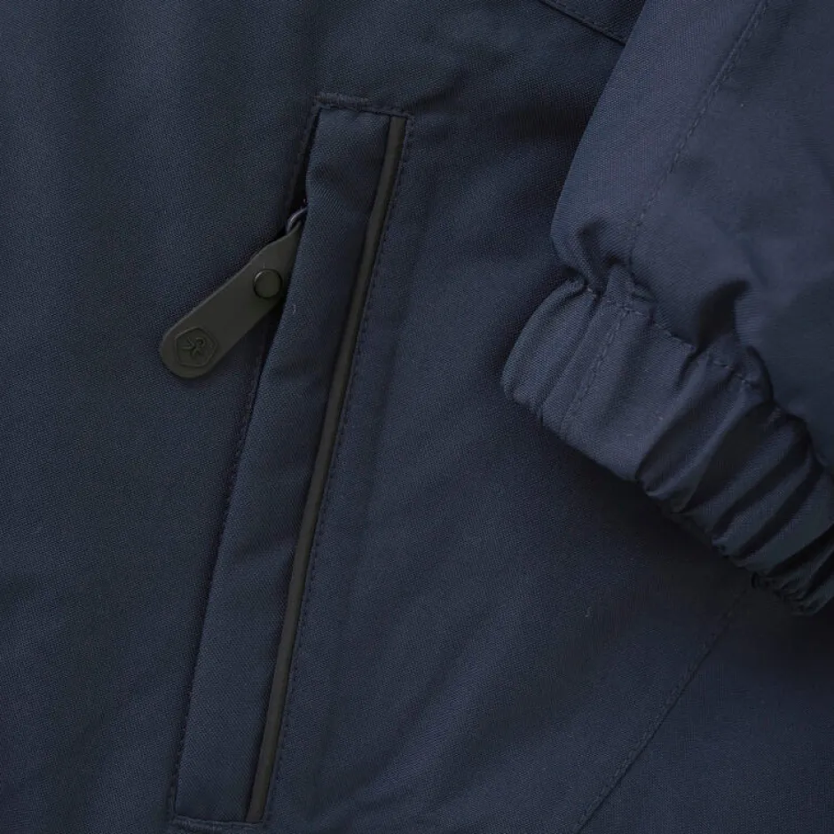 Denne varme flyverdragt til dit barn er fremstillet af slidstærkt materiale og har tapede sømme, som sikrer maksimal vandtæthed. Materialet er både åndbart, vindtæt og vandtæt, så dit barn kan lege udenfor i regn, sne og blæst uden at blive kold eller våd. Dragten har en testet slidstyrke på over 60.000 gnidninger og en åndbarhed på 10.000 g. Den lukkes med en kvalitetslynlås foran og har udvendige lommer med lynlåse. En hagebeskytter sikrer, at lynlåsen ikke generer under hagen. Flyverdragten har en aftagelig hætte med en aftagelig pelskant og justerbare støvlestropper i gummi, som kan placeres under støvlerne, så dragten ikke kryber op ad benet. Der er refleksdetaljer på ryggen og ærmet samt et navneskilt indeni. Flyverdragten er fremstillet af genbrugsmateriale, imprægneret med BIONIC FINISH® ECO, og certificeret i henhold til GRS – lavet med 53% genbrugsmateriale CERES-0366.