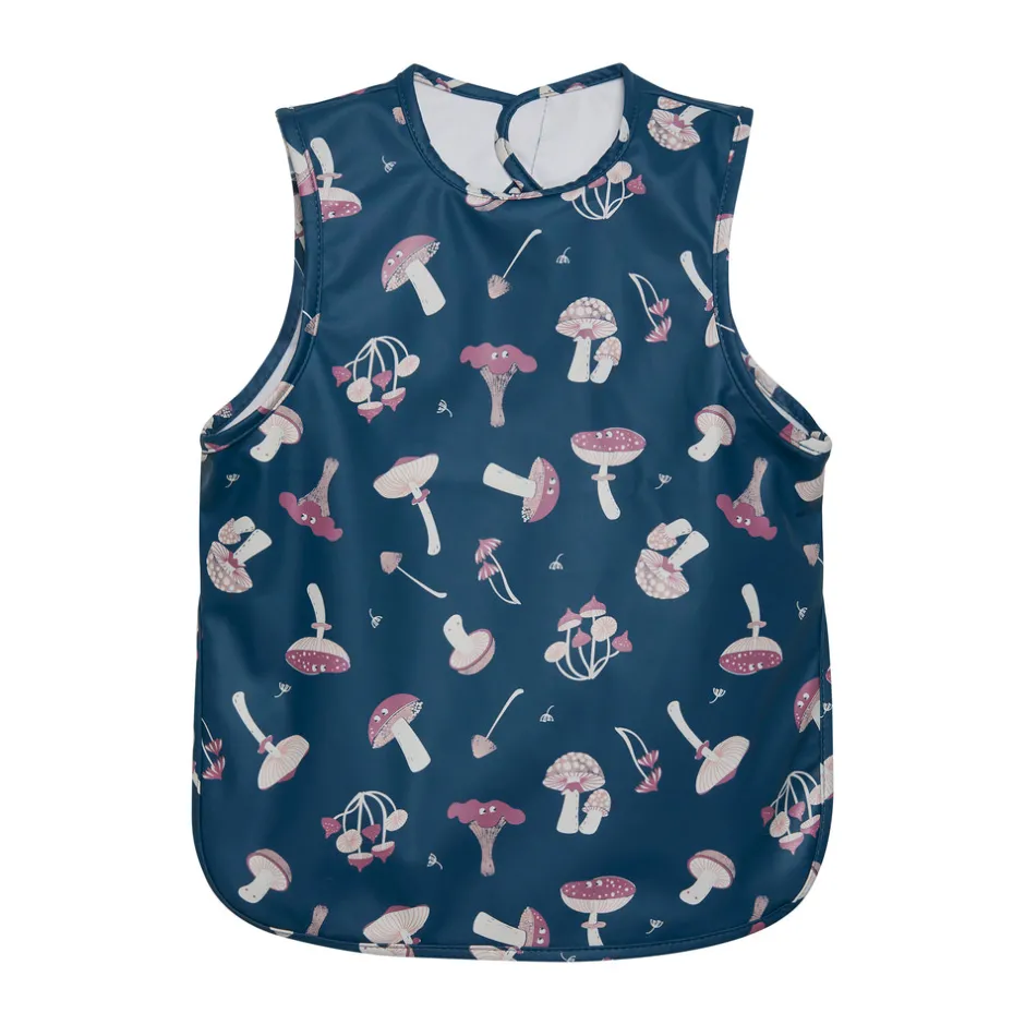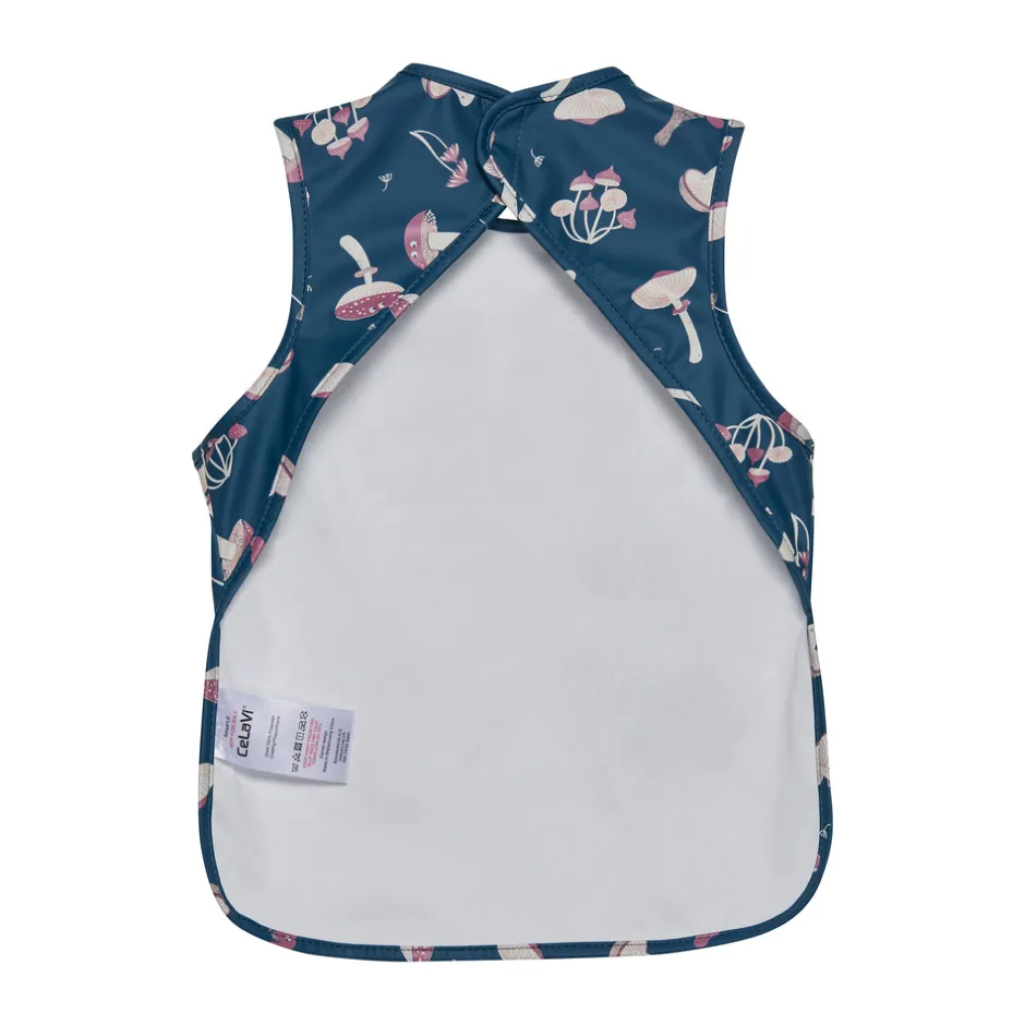 Praktisk all-over print PU spiseforklæde fra CELAVI. Fremstillet i delvist recycled materiale. Materialet er vandtæt, så den beskytter tøjet mod mad og drikke under spisning. Den har lange ærmer med elastik som afslutning og har opsamlingslomme foran. Lukkes i nakken med velcro, så den nemt kommer af og på.