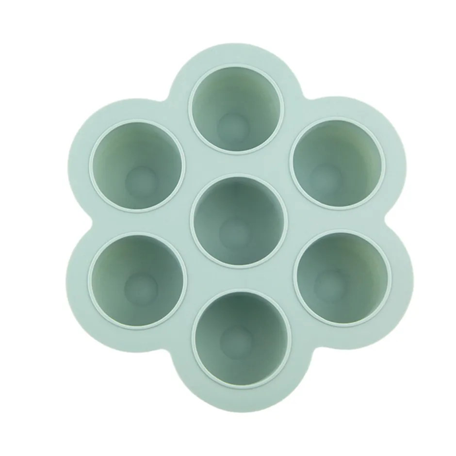 Super smart Baby food freezer cubes silikonebeholder med 7 rum til opbevaring og frysning af portionsretter såsom babymad, frugtmos, puré mm. Den fleksible silikoneform og de inddelte rum, gør det let at portionsinddele babys grød, frugt/grønsagsmos mm. Fyld indholdet i de enkelte rum, sæt det tætsluttende låg på og opbevar enten i køleskab eller fryseren. Den bløde silikone gør det super nemt at tage den frosne mad ud i den ønskede mængde, blot ved at trykke let på bunden af beholderen. Produceret af 100% LFGB fødevaregodkendt silikone helt uden phthalater og BPA. Silikonebeholderen tåler fryser, opvaskemaskine og mikroovn (husk at fjerne låget inden den sættes i mikroovnen og opvaskemaskinen) Undgå at bruge skarpe instrumenter i formen. Opbevares på et tørt sted og undgå direkte sollys. Holdes væk fra åben ild.