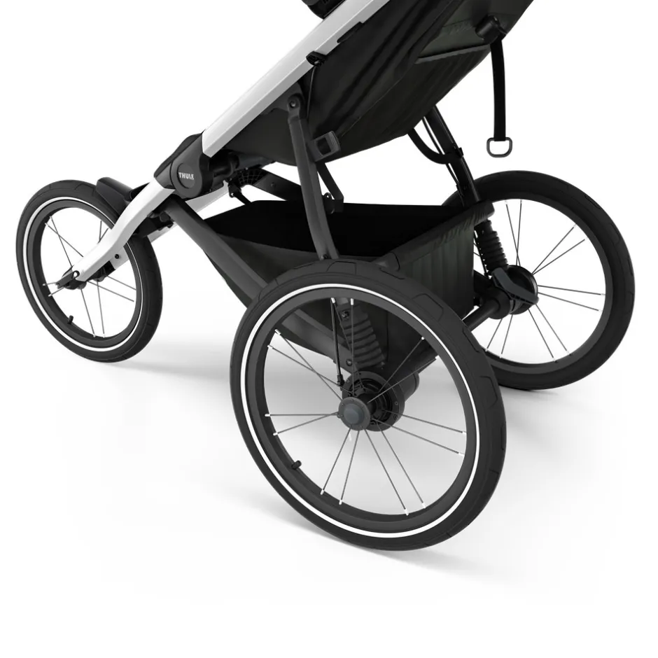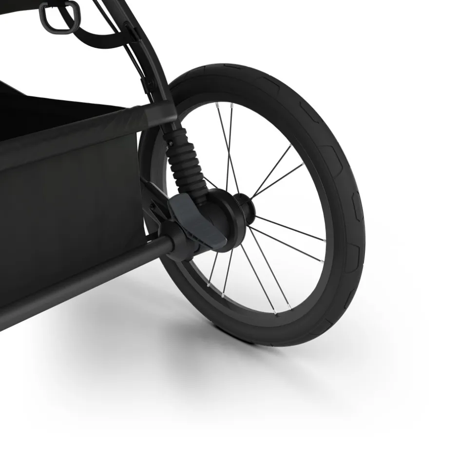 Thule Glide 3 er designet specifikt til løb. Med store 18″ baghjul, et fast 16″ forhjul og generøs plads til dine skridt, får du både fart og frihed. Den integrerede håndbremse giver dig fuld kontrol, selv i kuperet terræn, mens den opdaterede parkeringsbremse gør det nemt at holde pauser undervejs.