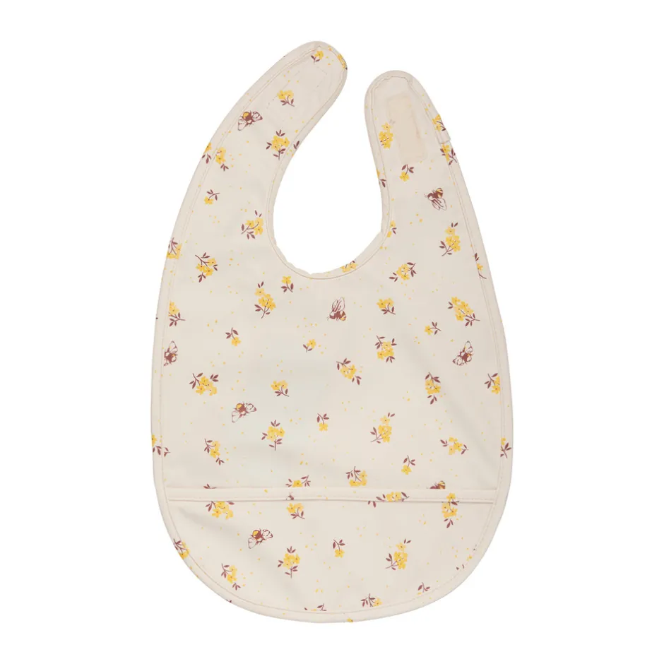 Hagesmæk i recycled polyester. Hagesmækken lukkes med Velcro i nakken. Med all-over-print. Foran har den en praktisk lomme, som fanger spild.