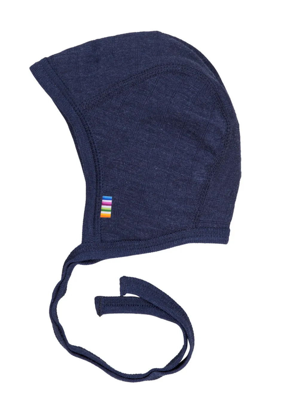 Hjelm med bindebånd. Enkelt lags. God pasform. En ekstra fin uldkvalitet med silke som er dejlig blød. Lodret rille mønster og et lidt skinnende udtryk gør denne kvalitet ekstra fin og lækker. Ensfarvet. Wool rich blend og Oeko-tex 100 mærket.