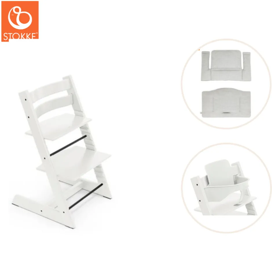 Højstolen: Løfter barnet op til spisebordet og skaber nærhed og fællesskab mellem barn og voksen, om det er spisetid eller hyggetid ved spisebordret. Det er let at tilpasse sidde- og fodplade i både højde og i dybden, i takt med at barnet vokser. Dermed opnås en optimal siddestilling med god bevægelsesfrihed, og støtte for både fødder og ryg. Den stabile fodplade giver dit barn sikkerhed og frihed til at bevæge sig på stolen, hvilket stimulerer barnets motoriske udvikling. Med Tripp Trapp® højstolen kommer dit barn til at sidde med ved spisebordet og nyde måltiderne sammen med resten af familien.