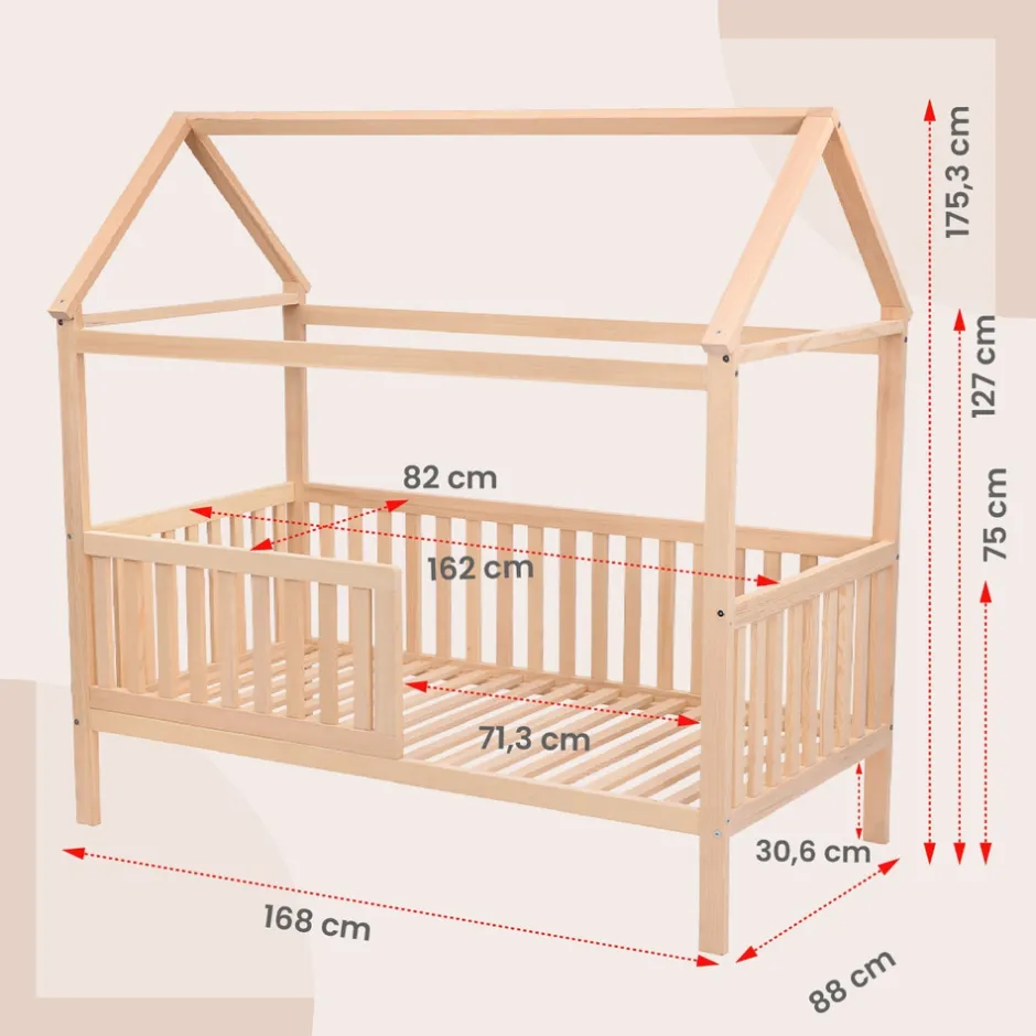 Kukka Husseng er et produkt, der stimulerer dit barns fantasi og giver plads til sjove lege. Denne seng har et unikt og stilfuldt design til børn i vækst, inspireret af Montessori-filosofien, der opfordrer dit barn til at komme ind og ud af sengen selvstændigt. Den matcher alle rum, fra moderne til klassisk, med sit neutrale design og naturlige farve, som gør den ideel til børneværelset. Den justerbare beskyttelsesvæg sikrer dit barns sikkerhed, og kan sættes i hver side eller fjernes helt.