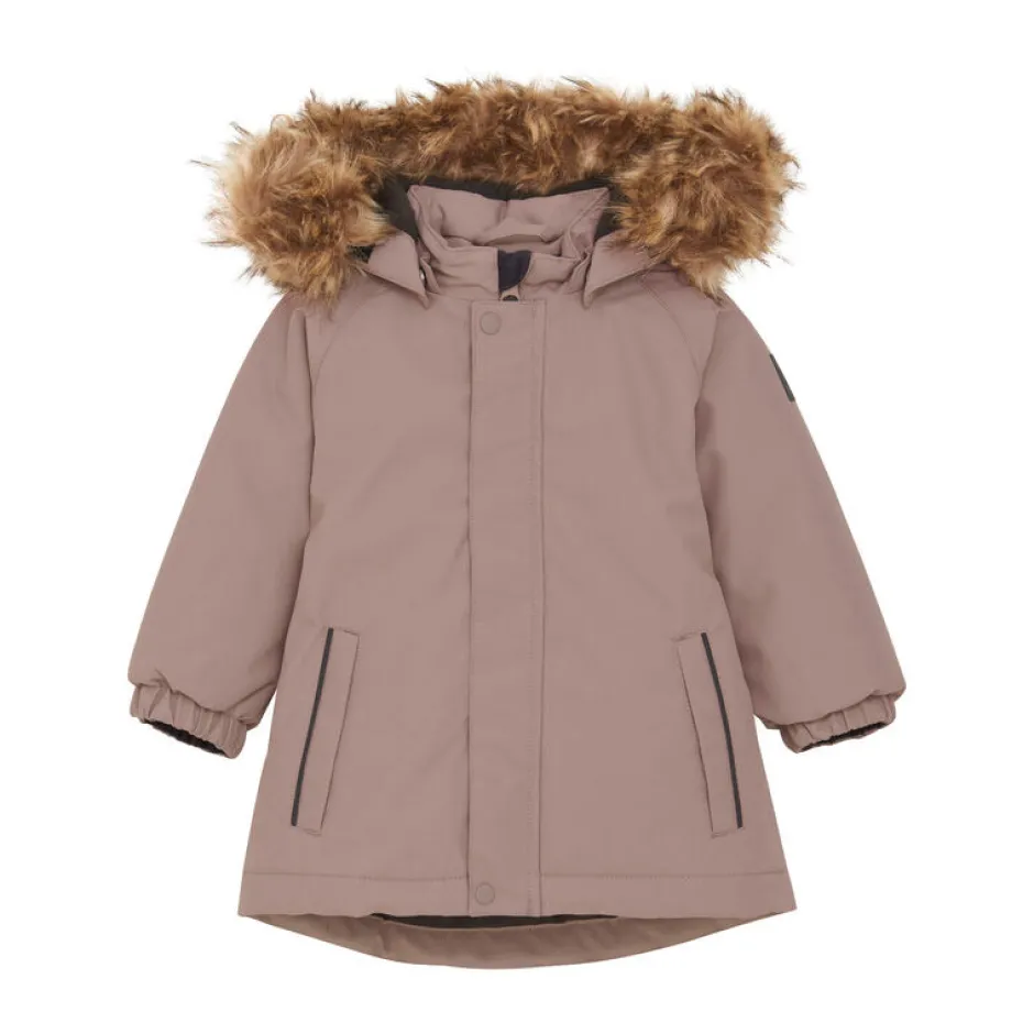 Varm parka med elastik i taljen bagpå for et skræddersyet look. Jakken er fremstillet af slidstærkt og delvist genanvendt materiale, behandlet med BIONIC FINISH® ECO. Materialet er åndbart, vind- og vandtæt, så dit barn kan være ude i regn, sne og blæst uden at blive koldt og vådt. Den er testet for slidstyrke med over 60.000 gnidninger og en åndbarhed på 2.000g. Jakken lukkes med kvalitetslynlås foran og ved de udvendige lommer, og hagebeskytteren sikrer, at lynlåsen ikke generer under hagen. Jakken har en aftagelig hætte med aftagelig pelskant, samt refleksdetaljer bagpå og på ærmet for øget synlighed. Indvendigt er der et navneskilt for nem identifikation. Certificeret i henhold til GRS og fremstillet af 58% genanvendt materiale (CERES-0366).