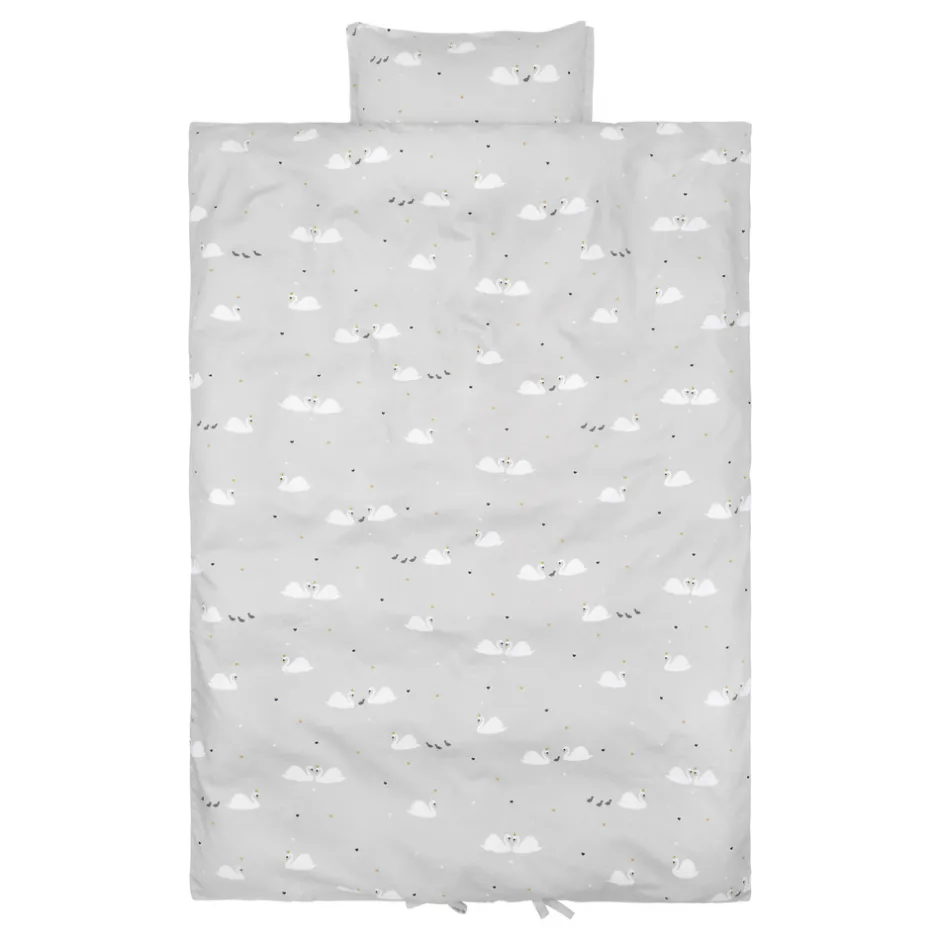 Junior: 100×140 cm | 40×45 cm.100% økologisk bomuld.Betræk dyne: Snorebinding / Betræk pude: Kuvertlukning.Maskinvaskes på 60° CSengesættet fra Vanilla Copenhagen er vævet i det fineste økologiske bomuld. Miljøvenlig og helt fri for allergener og skadelige stoffer.