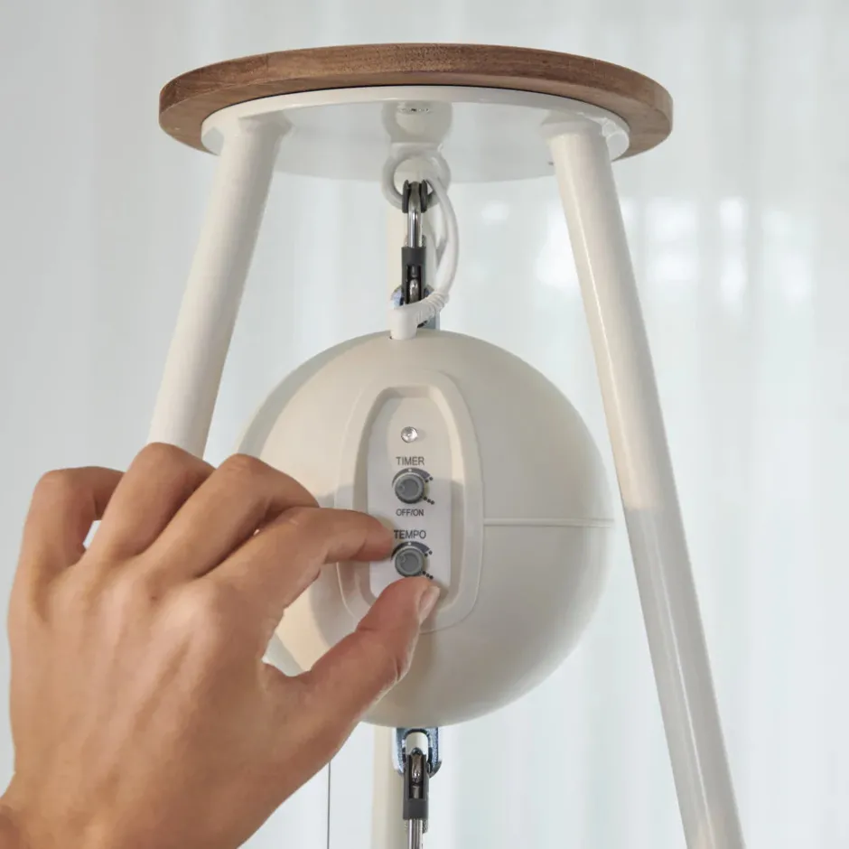 Ønsker du en hjælpende hånd til at holde Slyngevuggen, Tvillingeslyngevuggen eller Vuggens beroligende bevægelser i gang og hjælpe dit barn med at falde til ro eller sove bedre? Vuggemotoren er det du leder og har brug for. Den lydsvage Vuggemotor sørger for at vugge dit barn med blide, beroligende bevægelser, som får selv de mindste til at overgive sig til søvnen. Den klarer med andre ord opgaven for dig, så du med ro i sindet kan finde tid andre ting, mens dit barn sover trygt og roligt. Moonboons Vuggemotor er designet, udviklet og sikkerhedstestet i Danmark. Den er CE-mærket og overholder de krævende europæiske sikkerhedsstandarder. Derfor kan du være helt tryg ved at bruge Vuggemotoren, når du vil skabe bedre og mere søvn for dit barn. Tests viser, at Moonboons Vuggemotor er den mest lydsvage på markedet. 25% mere lydsvag sammenholdt med gennemsnitsmotoren. Du kan indstille den til at vugge i op til 12 timer og justere hastigheden, så den passer til dit barns behov og rutiner. Vuggemotoren er udviklet til Moonboons Vugge, Slyngevugge og Tvillingeslyngevugge og er sikkerhedstestet til at trække langt flere kilo, end et barn vejer. Moonboons fjedre er specialudviklet til produkterne og passer til barnets vægt for at opnå den korrekte beroligende effekt og den højeste sikkerhed. Kig altid efter fjederens bæreevne frem for motorens trækkapacitet.