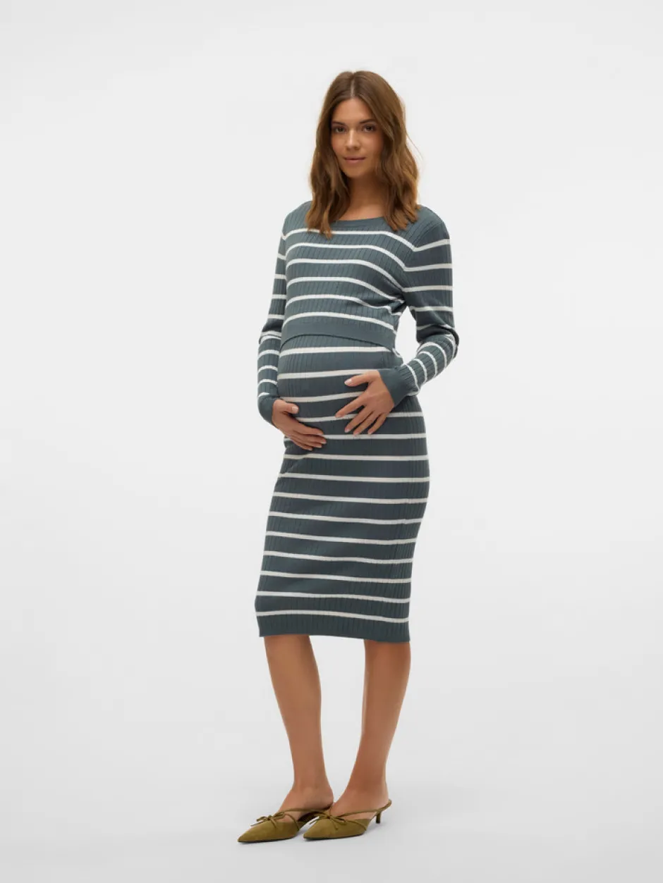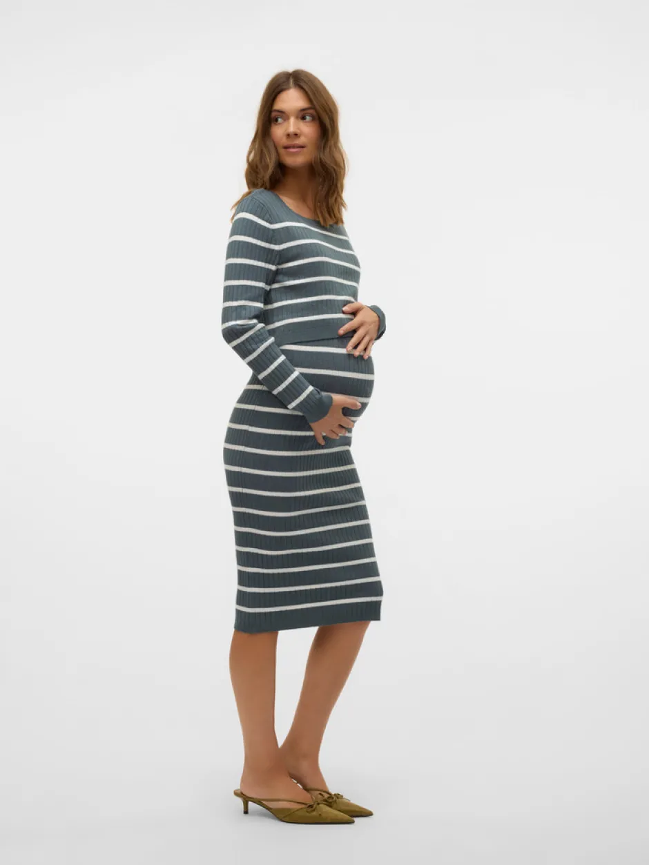 Newsiv June LS strik kjole fra MamaLicious er designet til at give dig maksimal komfort og stil under hele graviditeten. Kjolen har et klassisk, stribet mønster i en smuk stormy weather nuance, der passer til både hverdag og festlige lejligheder. Den bløde og strækbare viscoseblanding sikrer, at kjolen tilpasser sig din voksende mave, mens den flotte ribstruktur giver ekstra bevægelsesfrihed og et feminint udtryk. Med lange ærmer og en rund hals er kjolen både praktisk og elegant, og den kan nemt styles med strømpebukser eller leggings. Perfekt til dig, der ønsker en alsidig og behagelig kjole, som kan bruges hele året rundt.