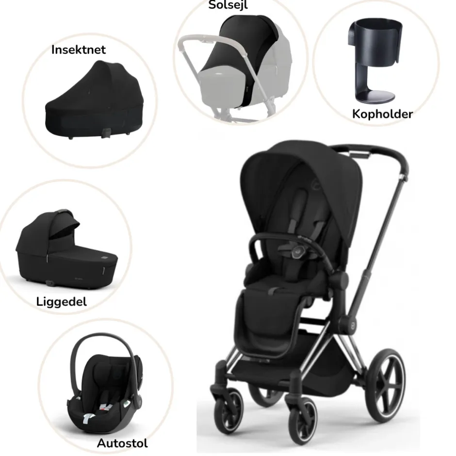 Liggedelen: For maksimal komfort og beskyttelse til din lille nyfødte og til 6 mdr. Du skal blot klikke barnevognskassen på Priam stellet med adaptere, og du er klar til at gå.