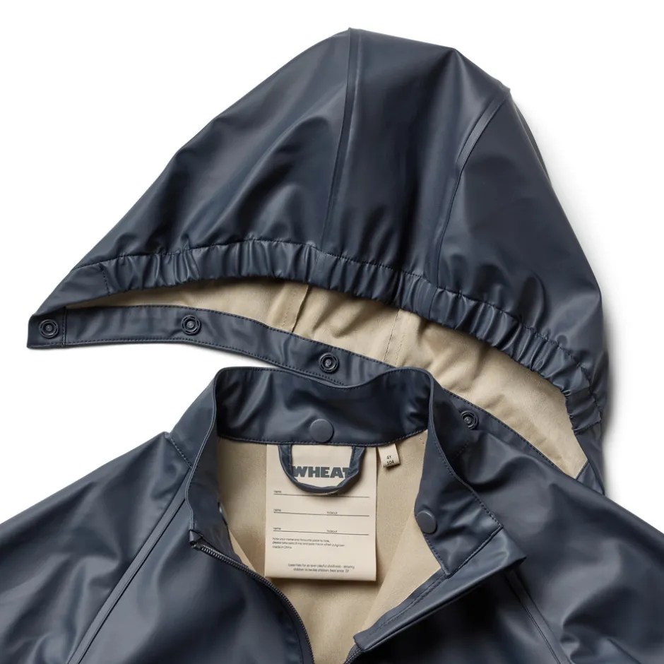 Wheat’s praktiske regntøj bør være en fast del af dit barns garderobe. Det er lavet i et superblødt og let materiale, der gør det behageligt for dit barn at have på og bevæge sig i. Det er vandtæt og smudsafvisende og er derfor let at rengøre med en våd klud efter en livlig dag udendørs.