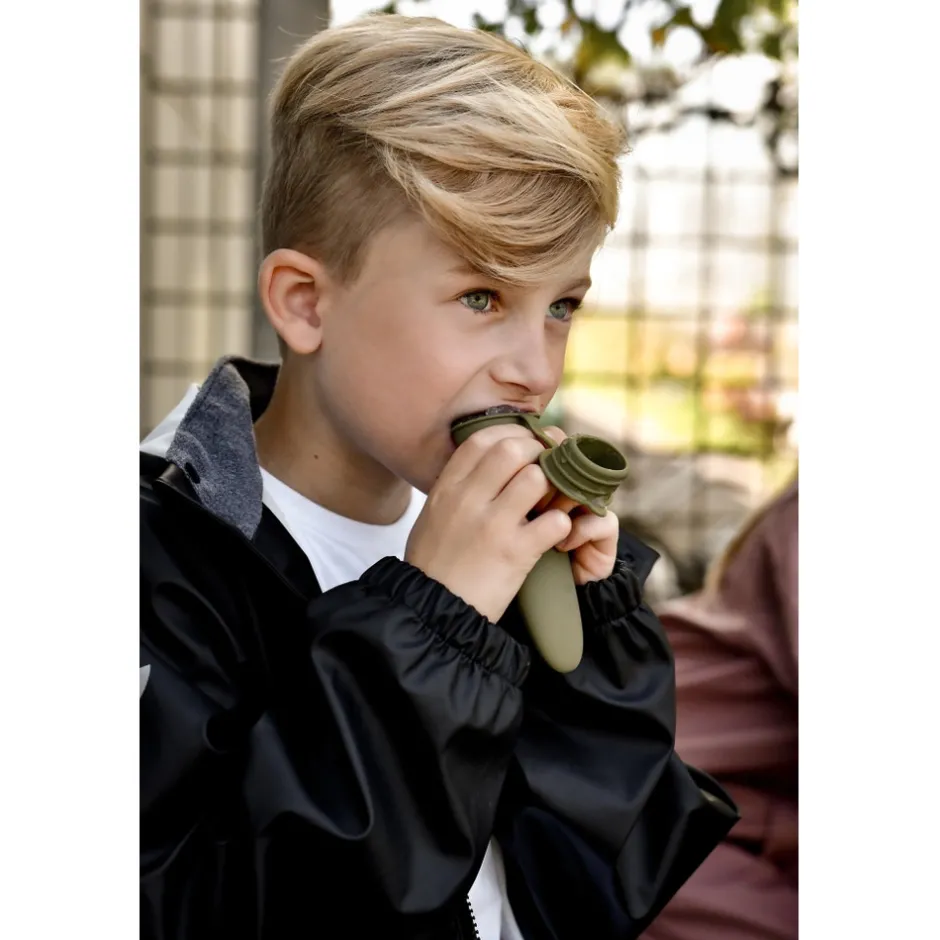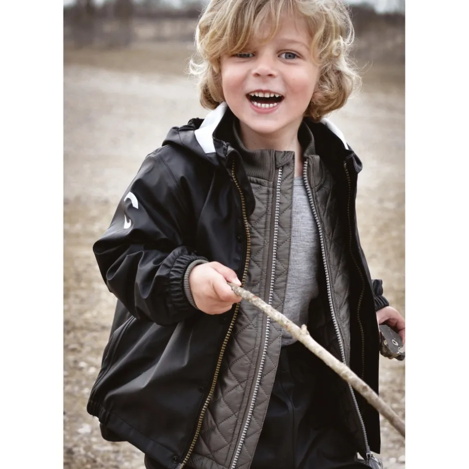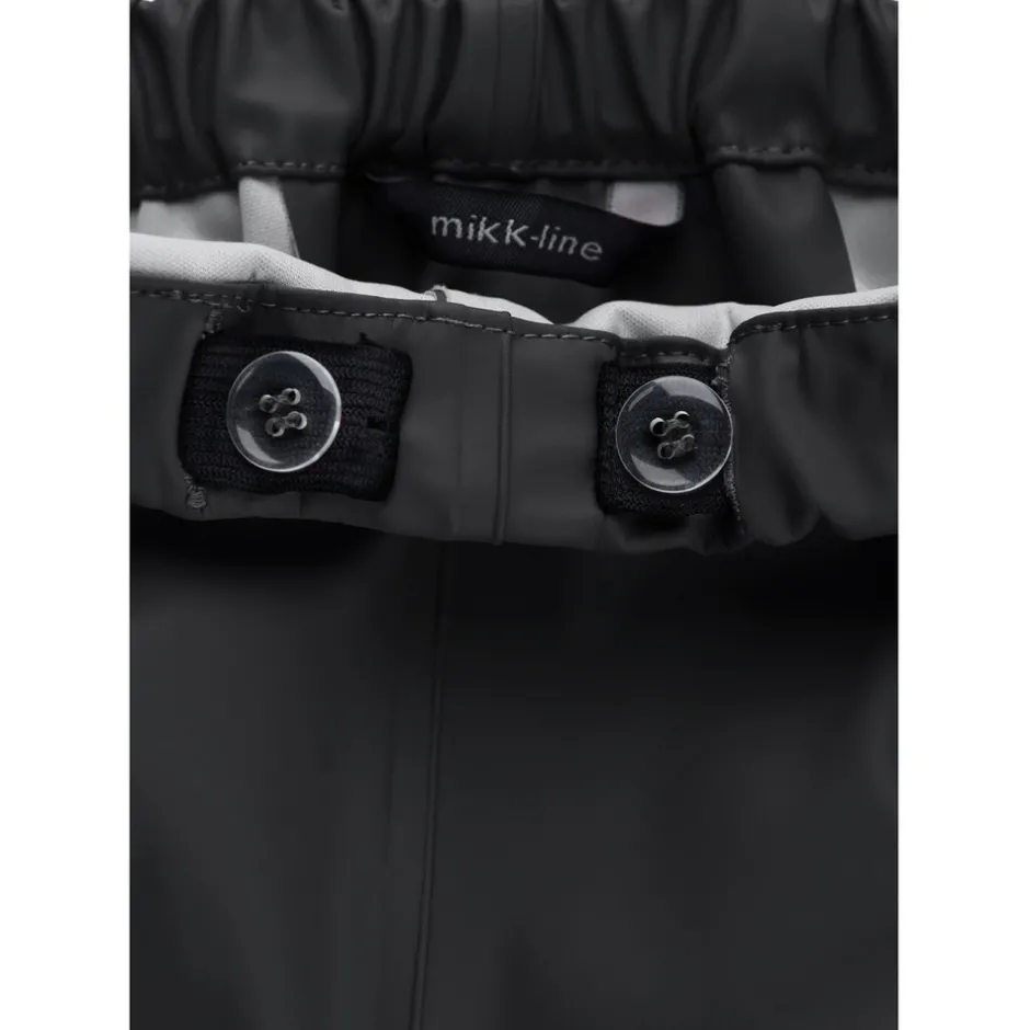Klassisk PU regntøj uden seler fra mikk-line. Sættet består af en vandtæt regnjakke og regnbukser, der begge er lavet af 100% genanvendt og blødt PU-materiale. Regntøjet er skabt til at børn kan trodse regnen og have det sjovt med at hoppe i vandpytter, glide ned ad den våde rutsjebane, lege i den våde sandkasse osv. Placer de justerbare fodstropper under støvlerne, for at holde fødderne tørre og undgå at bukserne glider op. Buksernes taljeomkreds kan tilpasses efter behov, og så har sættet har et indvendigt navneskilt med plads til mere end ét navn, så giv det gerne videre, så endnu et barn kan få glæde af det.