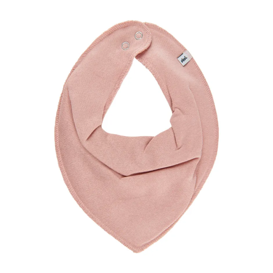 Tørklæde formet hagesmæk med trykknap i nakken.