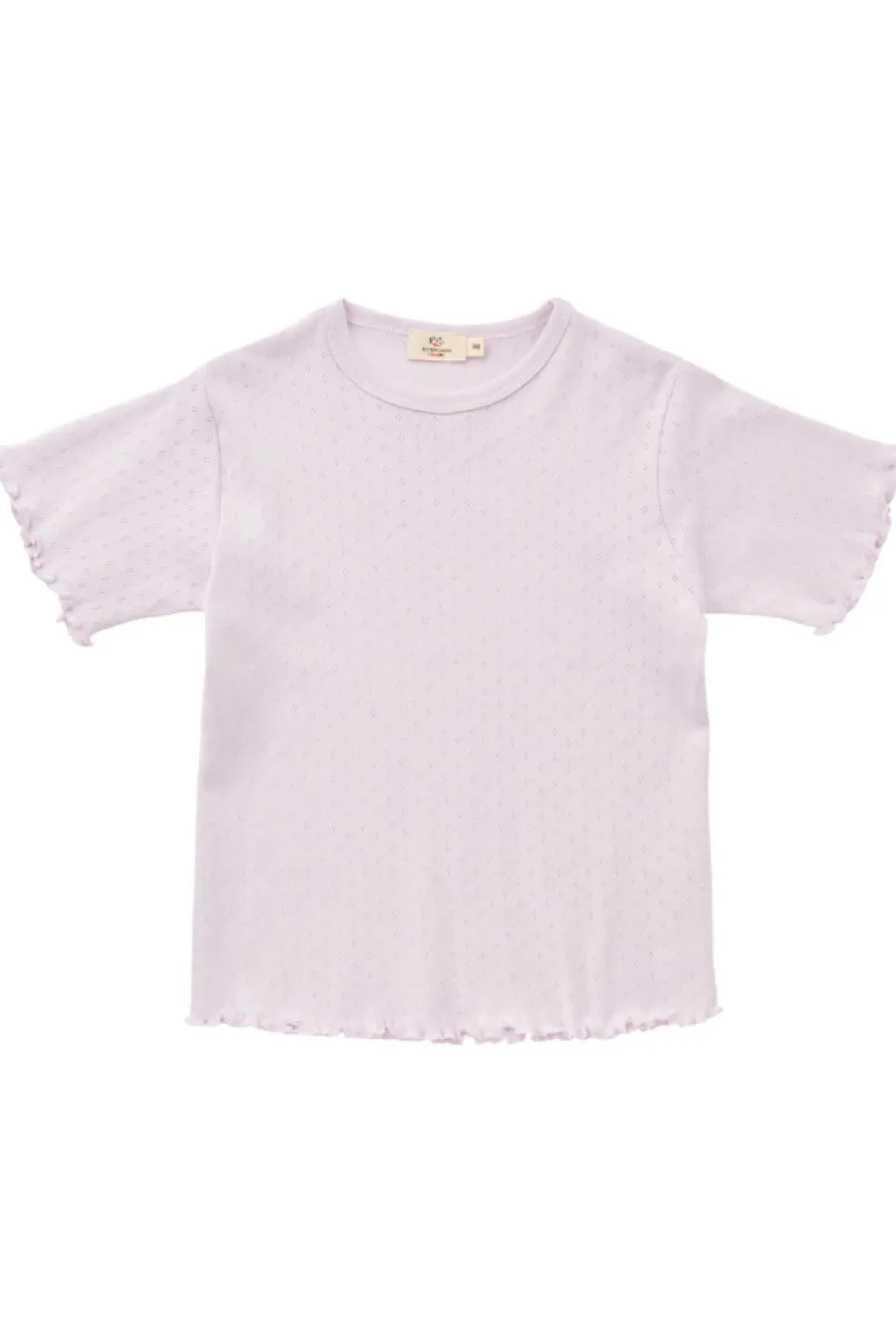 Sommer pointelle t-Shirt – Let og Lækker sommerkomfort. Denne t-shirt er lavet af et let og åndbart materiale, ideel til varme sommerdage. 100% økologisk bomuld.