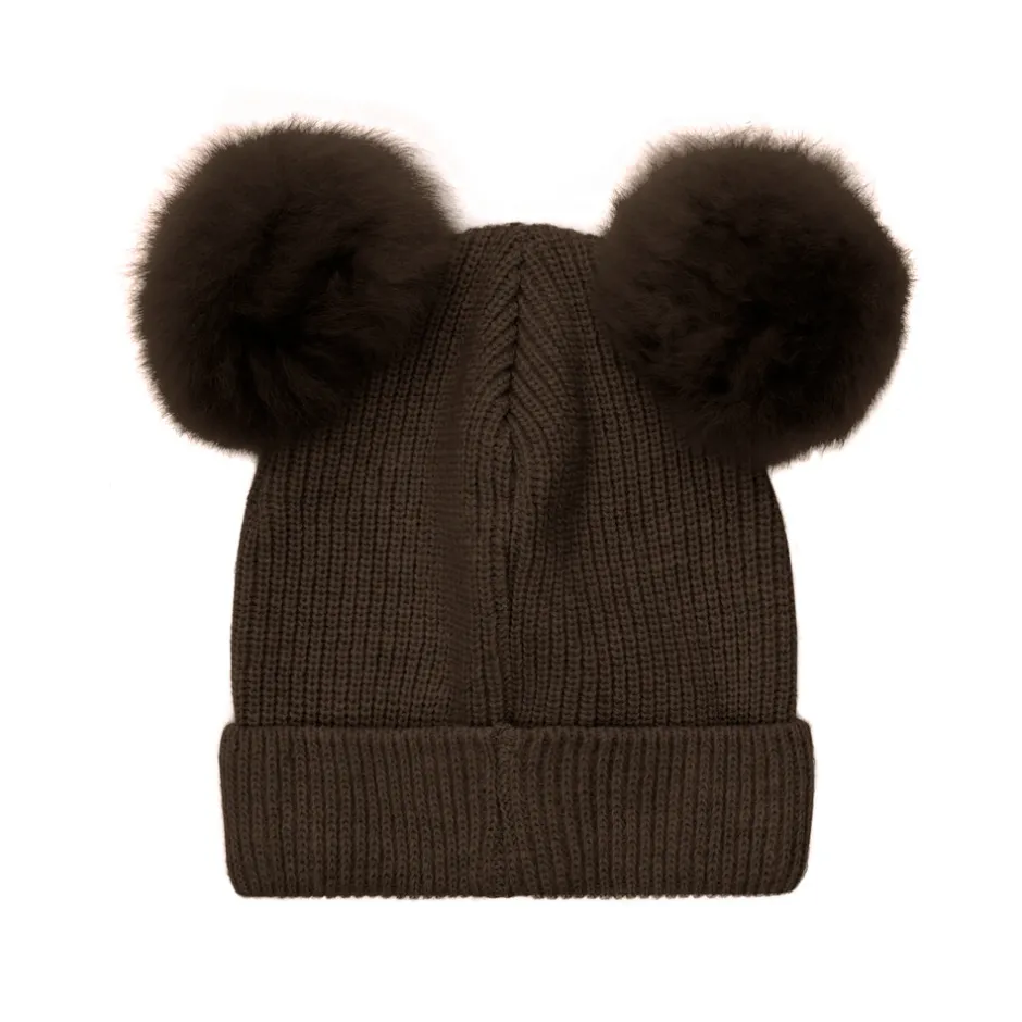 Skøn strikket HUTTEliHUT hue med to bløde alpaka pompomer på toppen. Huen er i en kraftig strik til de kolde vinterdage. Der er et foer strikket ind i huen fra ombukkets slutning, i en blød bomuldsgarn. HUTTEliHUT huen er i en Merrino uldblanding. Pomponen er et Fairtrade produkt, lavet med pels fra alpakaer i det bolivianske højland. Hver pompon er unik og vil variere i farve og udtryk. Ingen farvning er involveret – undtagen naturens egen. Pomponen er syet i hånden og kan vaskes. Se vejledningen på plejeetiketten.