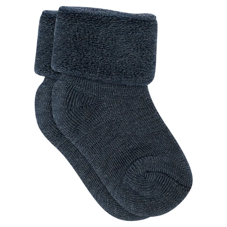 Frotté strømper i uld til de små. Strømpen har ekstra elastik ved anklen, så strømperne ikke falder af.