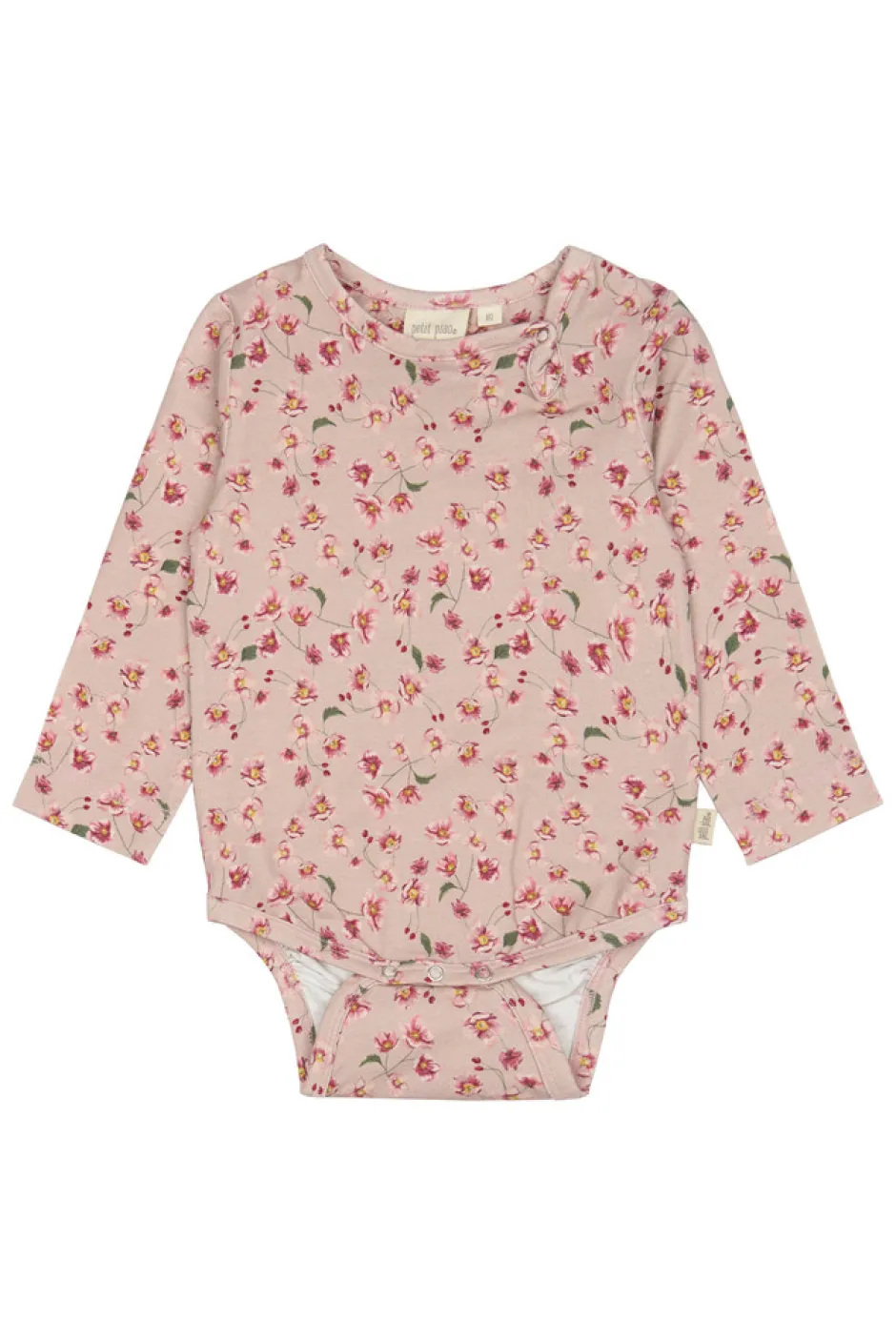 Printede body med akvarelprint fra Petit Piao i økologisk bomuld. Printene er inspireret af naturen og alt omkring den jyske vestkyst. Printene er med en cremefarvet baggrund, så printet er i fokus. I halsåbningens venstre side er der en trykknap som gør det nemt at få den over barnets hoved. I bunden er der tre trykknapper, som gør det let at stifte barnet. Der er 5% elastan i, så barnet har let ved at bevæge sig og lege. Produceret i Indien.