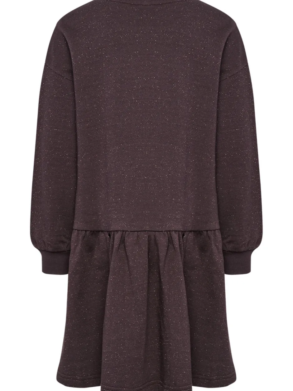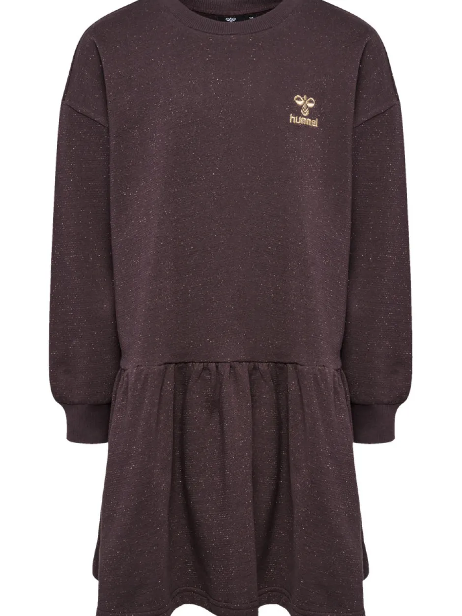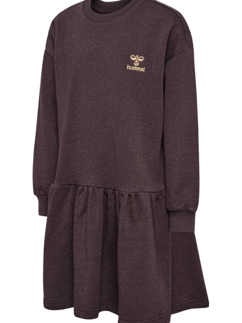 CAROLA DRESS L/S er fremstillet af blødt sweatstof med økologisk bomuld, som har en glitrende finish. Denne langærmede kjole har rund hals og et iøjnefaldende broderet logo med metallic detaljer på brystet.