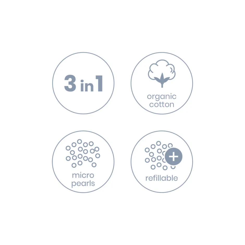 Doomoo kombinerede ammepude og graviditetspude er en stor, ultrablød og ergonomisk pude anbefalet af jordemødre. Puden er fyldt med minimale og rustfri EPS-bolde, der gør den formbar og giver optimal støtte til små og store mødre og den voksende baby. Under graviditeten giver puden støtte og aflastning, og en mere behagelig sidde- eller liggende stilling. Puden anbefales af jordemødre til gravide, der har problemer med bækkenbunden eller søvnbesvær. Puden ligger fast mellem ben og hoved. Puden støtter så maven og aflaster trykket, når bækkenbunden løsner sig. Som ammepude fungerer puden optimalt med sine minimale EPS-bolde. De sikrer, at puden bevarer sin fasthed og spændstighed under hele amningen, og ikke hænger. På den måde får barnet den optimale ammestilling og mister ikke grebet om brystvorten, samtidig med at moderen får god aflastning for sine skuldre, nakke og ryg. Doomoos kombinerede graviditets- og ammepude har flere smarte funktioner. Den kan også bruges som en behagelig liggestøtte til barnet, både når det ligger på maven og på ryggen, og som en sikker sædestøtte, som en “lære at sidde hynde”. Den fungerer også fantastisk som læsepude til både børn og voksne.