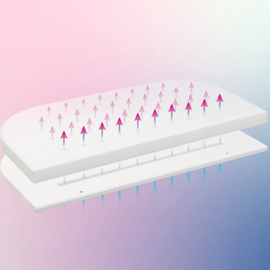 Madrassen babybay® Classic Fresh giver en høj luftcirkulation med de lodrette klimakanaler i komfortskumkernen, som er nøjagtigt tilpasset babybay® liggefladens ventilationsslidser. Den optimale lufttilførsel forhindrer varmeakkumulering og giver dermed en pålidelig og hygiejnisk beskyttelse mod fugt. Komfortskumkernen tilpasser sig ideelt til din favorits kropsform på grund af den udførlige, bløde quiltning af det åndbare betræk i stjernedesign, har en understøttende effekt og sikrer dermed en dyb, lang, afslappende og drømmeagtig babysøvn.