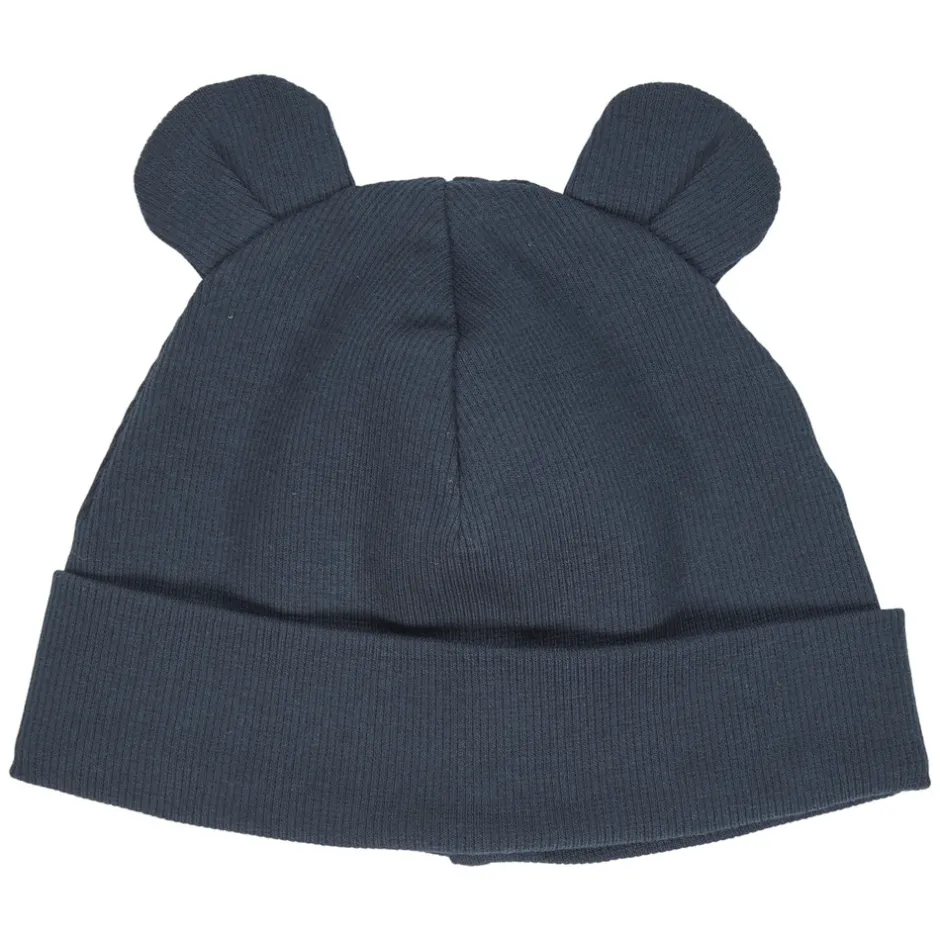 Denne charmerende hat er lavet i en dejlig blød og strækbar 2×2 bomuldsrib, som sikrer en behagelig og fleksibel pasform. Hatten er udstyret med små bamseører, der giver et ekstra nuttet og legende udtryk – perfekt til de mindste.