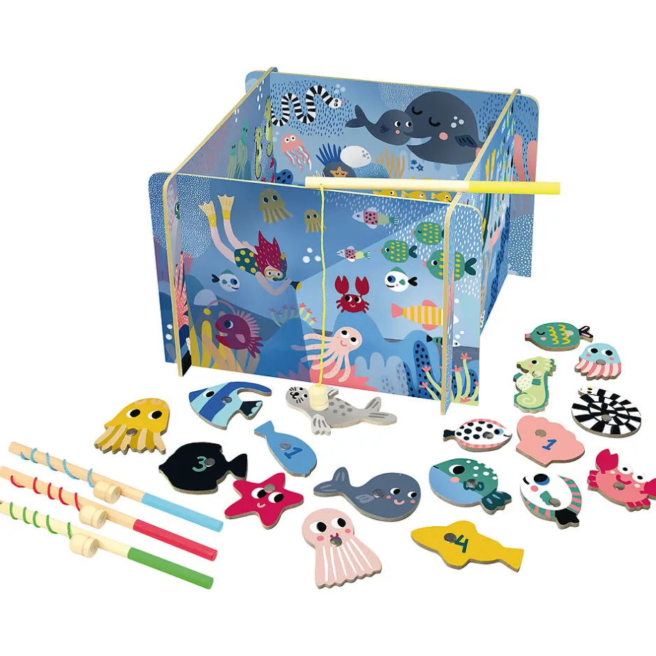 Et dam illustreret af kunstneren Michelle Carlslund med fisk under havet. Medfølger: 4 fiskestænger med magnet, 20 fisk med magnet til at fiske op med fiskestang.