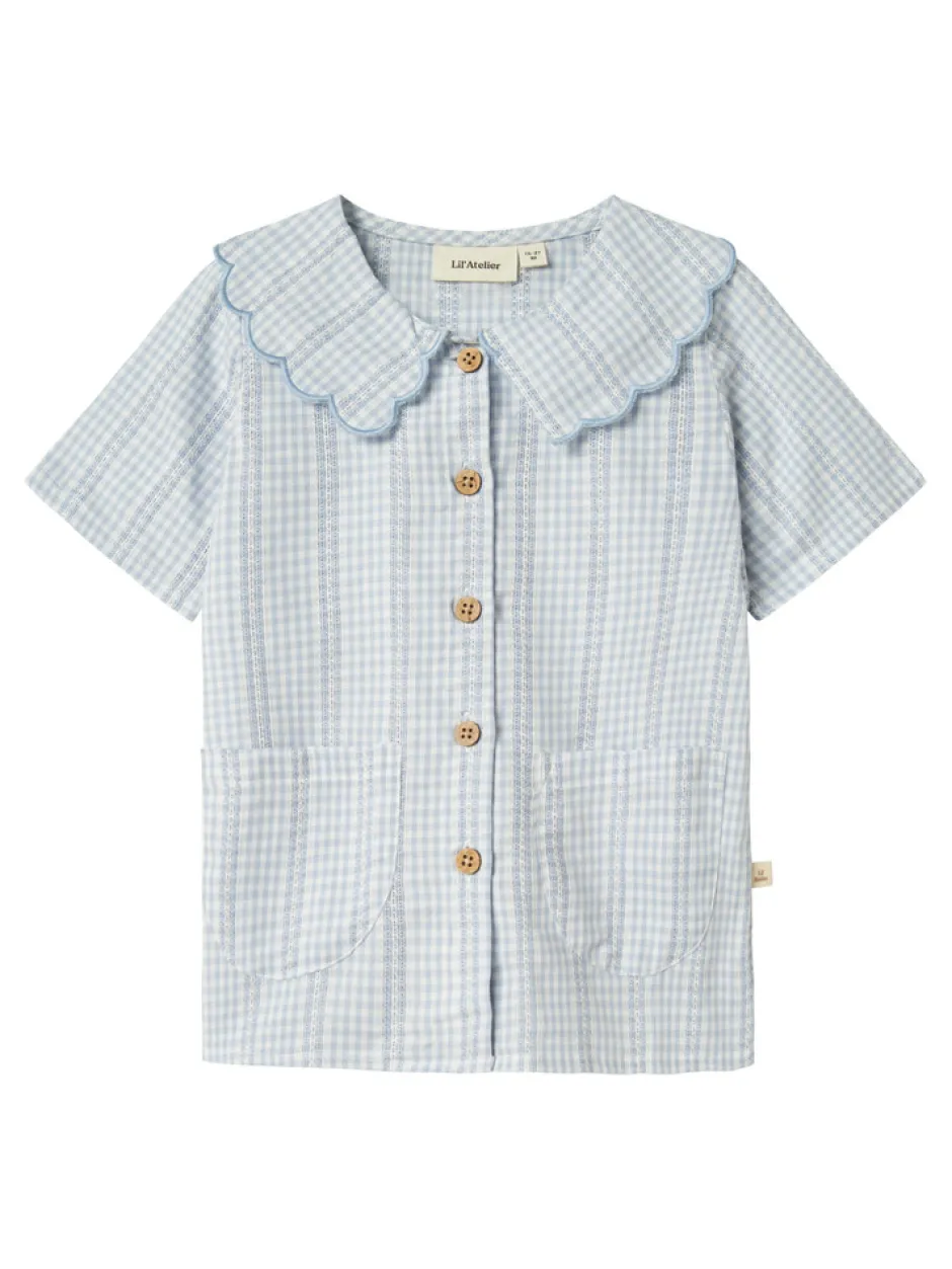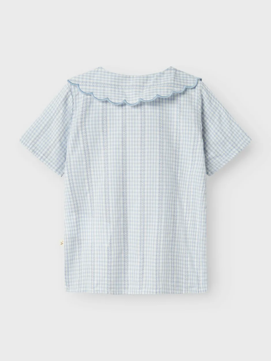 Giv din piges garderobe et friskt pust med denne charmerende ternede skjorte med sød flæsekrave. Skjorten er perfekt til både hverdag og særlige lejligheder, og den kombinerer klassisk ternet mønster med en moderne flæsekrave for et unikt look.