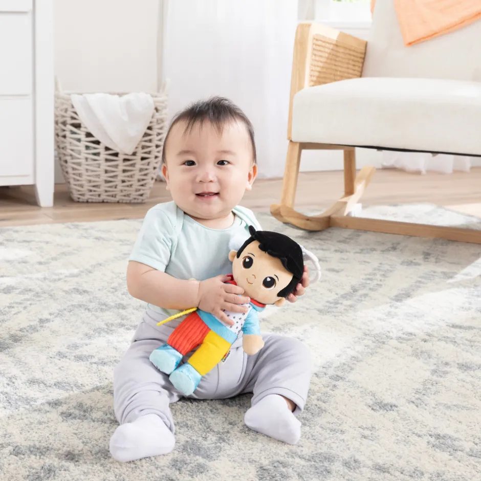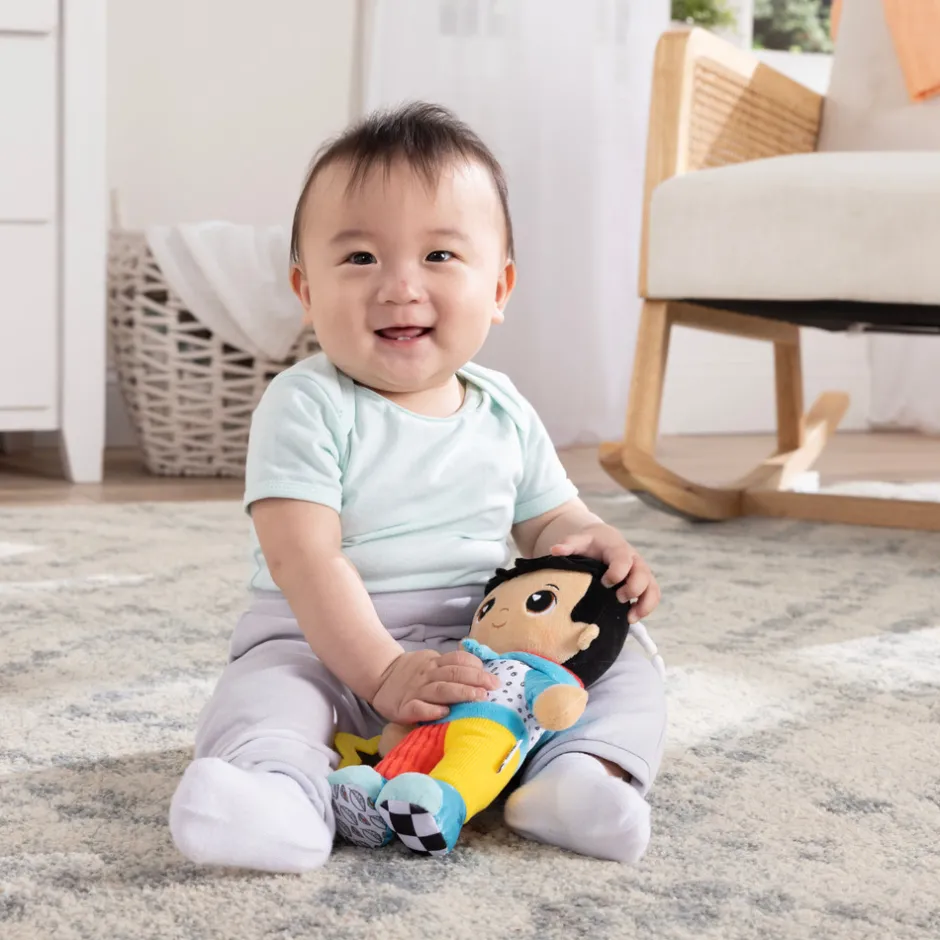 Min Ven Lucas er en kær plysven, der med garanti vil få de små til at smile. Han har et broderet ansigt, knitrende fødder, en lille klokke og en stjerneformet bidering, som kan trøste din baby, når det er nødvendigt. Dette charmerende legetøj er ideelt til at stimulere babys sanser. De livlige farver, højkontrastmønstrene, de knitrende og klingende lyde samt de forskellige teksturer gør legen både sjov og lærerig.
