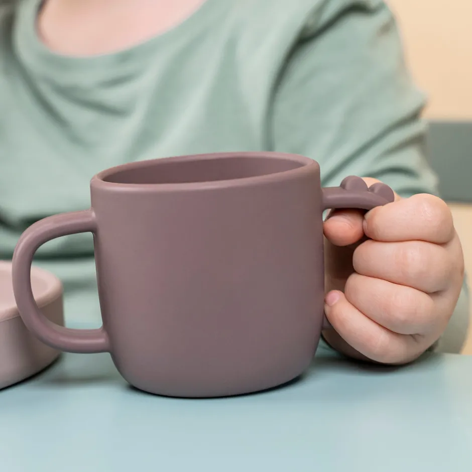 Peekaboo spisesættet er designet til at vække barnets nysgerrighed. Elphee, Wally og Croco titter frem fra servicet og gør spisetid ekstra sjovt. Børne servicet har en perfekt størrelse til de første måltider og når de små skal lære at spise selv. Den søde tallerken, gaffel og praktiske kop med 2 hanke er lavet i fødevaregodkendt silikone, som gør det brud- og skridsikkert og ikke mindst sikrer et godt greb for barnet. De små vil elske at have de søde dyr med til bords + opdag Croco i bunden af koppen når der drikkes, og lad Elphee og Wally hjælpe de små med at nå den spændende milepæl med at kunne spise selv.
