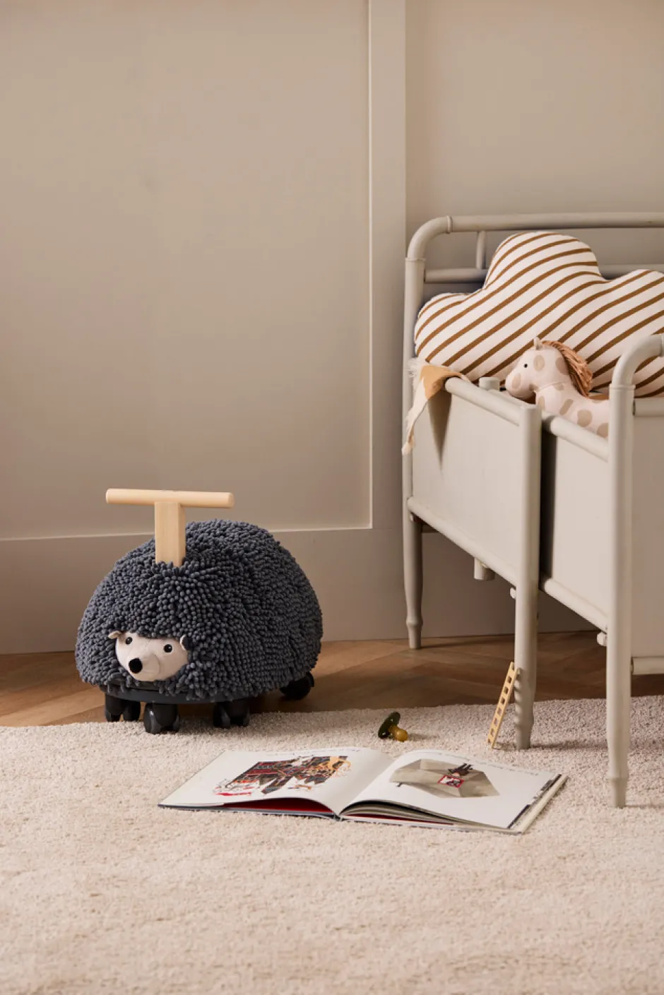 Ride-on pindsvinet giver dit barn mange timers sjov leg, mens dit barn træner motorik, styrke og balance. Køretøjet er stabilt i konstruktionen takket være dets fire leddelte hjul, der er let at dreje. God venderadius og gummiet omkring dækkene dæmper lyden, når krudtuglen kører rundt i stuen.