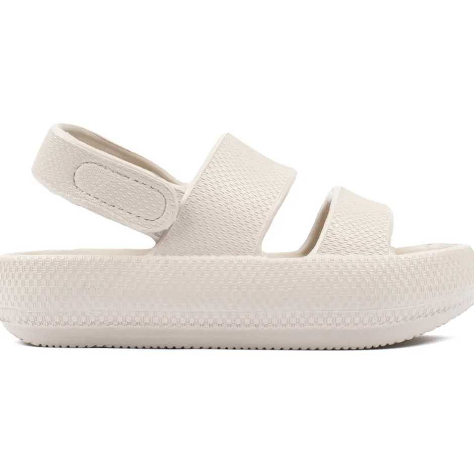 Moderne og enkle badesandaler fra mikk-line til til børn. Disse ensfarvede, lette sandaler er nogle af de mest komfortable, du kan finde. De er vandtætte og har skridsikre EVA-såler, hvilket gør dem velegnede til både poolen og stranden. De er nemme at tage på, har en behagelig og sikker pasform og giver god stødabsorbering.