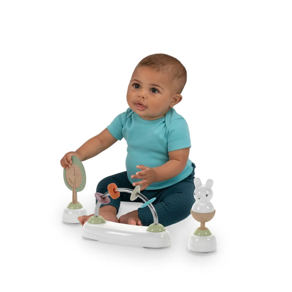 Verden ligger for babys fødder med Ingenuity Step & Sprout™ – First Forest™ 3-i-1 gåvognen. Små børn i alderen 6-24 måneder kan bevæge sig omkring og udforske temaet natur med aktiviteter i 3 forskellige tilstande, der vokser med baby. Gåvogns-tilstanden understøtter babys første skridt, mens skub-på-gåvogn-tilstand hjælper med at holde babyen stabil, mens den går. De 3 aftagelige naturinspirerede legetøj har sugekopper til fastgørelse på bakker eller borde. Gåvognen er nem at rengøre, og der medfølger en stor bakke med en aftagelig, BPA-fri bakkeindsats, der kan gå i opvaskemaskinen, mens både sædepude og legetøj kan tørres af. Den bløde sædepude får baby til at føle sig godt tilpas, mens den robuste ramme hjælper med at holde baby sikker. Efterhånden som dit barn vokser, har gåvognen 3 justerbare højdepositioner. Hvad enten du er på farten eller vil gemme gåvognen af vejen, så gør det foldbare design med bærehåndtag og lås det meget nemt.