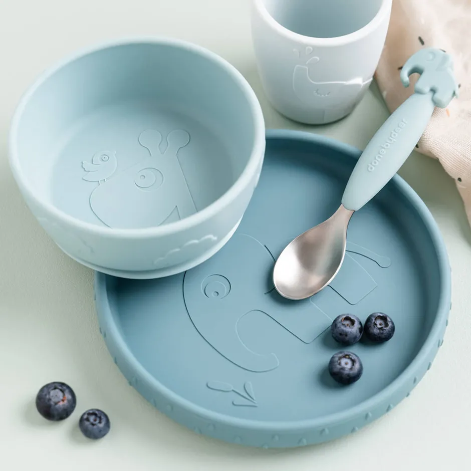 • Spisesæt bestående af en tallerken, en skål og en minikop