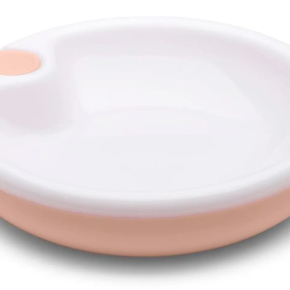 Det holder babymaden ved den rigtige temperatur i lang tid på en naturlig og ensartet måde takket være varmtvandsbeholderen. Udstyret med hævede anti-splash kanter, skridsikker bund og praktiske anti-skoldede håndtag.