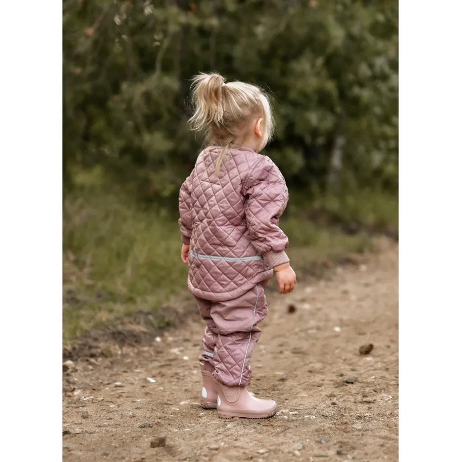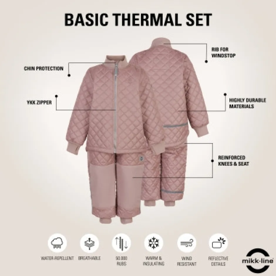 Lækkert og blødt termosæt fra mikk-line – det perfekte valg for aktive børn. Termosættet er vandafvisende og har både reflekslogo og refleksbånd, der sørger for, at dit barn kan ses i mørke. Forstærkninger på knæ og bag gør bukserne ekstra slidstærke.