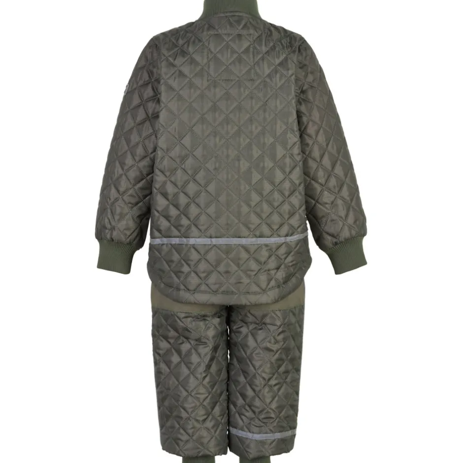 Lækkert og blødt termosæt fra mikk-line – det perfekte valg for aktive børn. Termosættet er vandafvisende og har både reflekslogo og refleksbånd, der sørger for, at dit barn kan ses i mørke. Forstærkninger på knæ og bag gør bukserne ekstra slidstærke.
