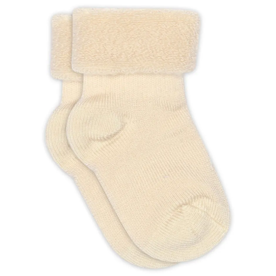 Frotté strømper i uld til de små. Strømpen har ekstra elastik ved anklen, så strømperne ikke falder af.