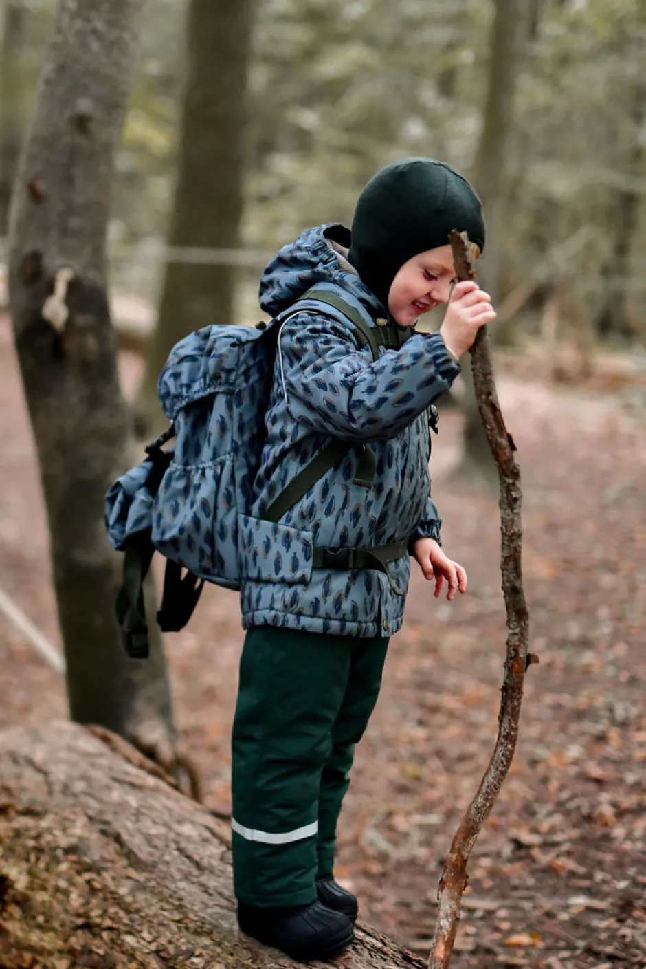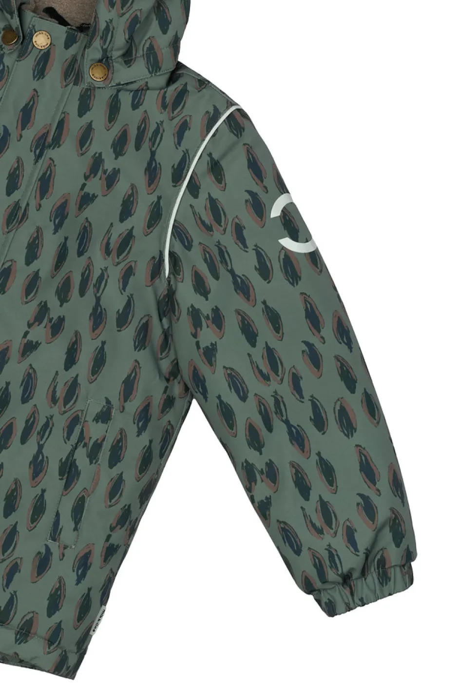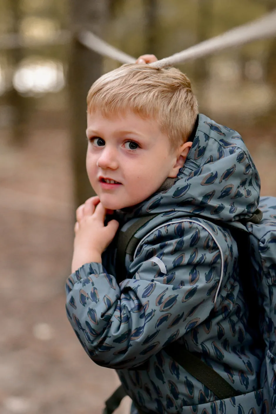 Mønstret mikk-line vinterjakke til børn, der elsker leg og eventyr i naturen og under åben himmel. Det er en moderne, letvægts vinterjakke, der giver varme og komfort til dit barn i det kolde efterårs- og vintervejr med vind, regn og sne.