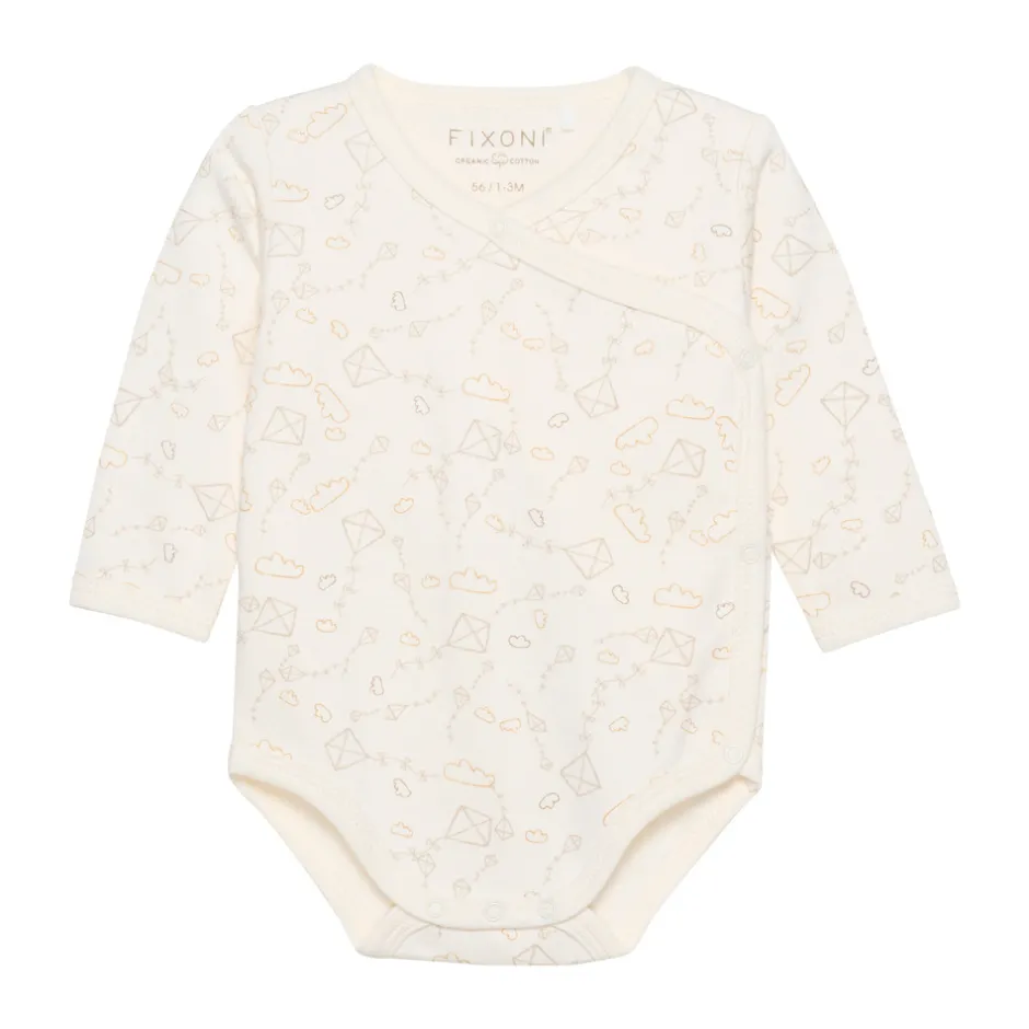 Bomuldsbody med trykknaplukning på skulderen og mellem benene samt ved slå-om-flappen i siden. Bodyen er lavet i ren, økologisk bomuld med all-over-print. Certificeret i hht. STANDARD 100 by OEKO-TEX® cert. nr. SH020 156011 TESTEX, tiltro til tekstiler
