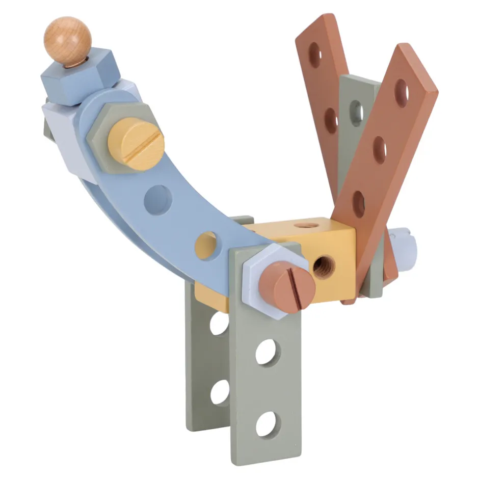 Se her små handymen og handywomen! Med denne robuste arbejdsbænk i træ kan børnene hamre, skrue og bygge, hvad de vil. Uanset om det er en sej bil eller deres egen kreative konstruktion – alt er muligt! Sættet indeholder forskellige værktøjer, f.eks. en rundsav, og opfordrer til rolleleg, motoriske færdigheder og kreativitet. Er du klar til at gå i gang?