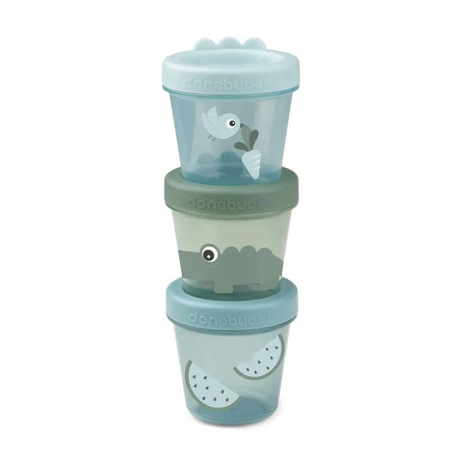Brug dette praktiske sæt af tre babymad bøtter og lad en Deer friend holde et vågent øje med godterne indeni. Bøtterne er perfekte til snacks til børnehaven eller skolen eller til at gemme rester af hjemmelavet mos i fryseren. De transparante beholdere kan stables og er nemme at opbevare både når de er i brug, og når de gemmes væk. Skruelågene gør dem både luft- og vandtætte og søde detaljer med Crocos krokodilletakker på lågene samt Deer friends print sikrer en sjov snacktid. Giv dit barn en hyggestund med et lille måltid og vores Deer friends. Babymad bøtterne i nuancer af blå har forskellige sjove print. En med Birdee, der flyver afsted med en gulerod, en anden med Croco på jagt efter snacks og en tredje med vandmelon.