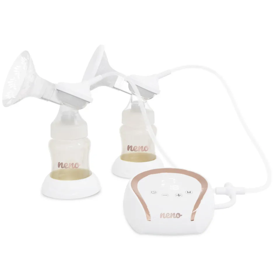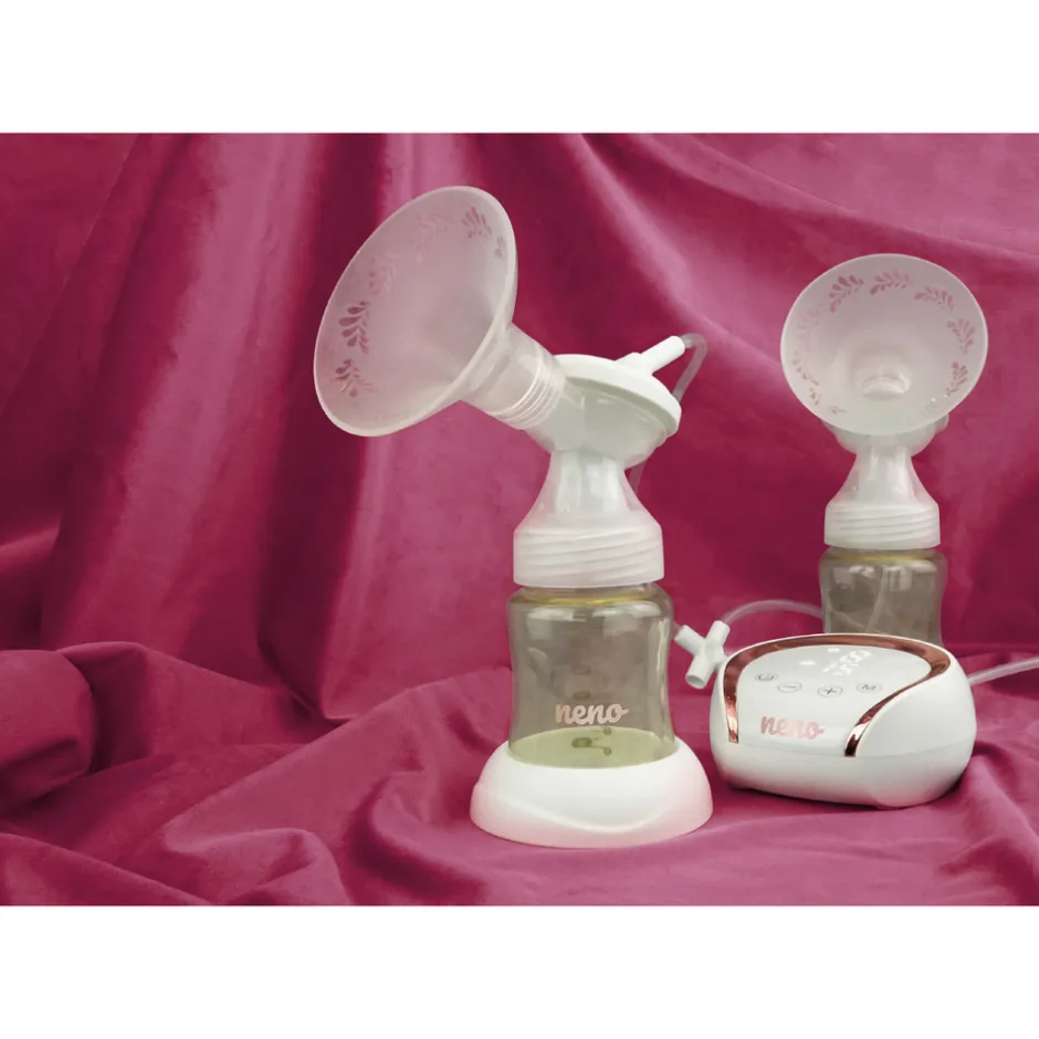 Brystpumpesæt bestående af brystpumpe-bh og elektrisk brystpumpe med tre faser og i alt 27 intensitetsniveauer.
