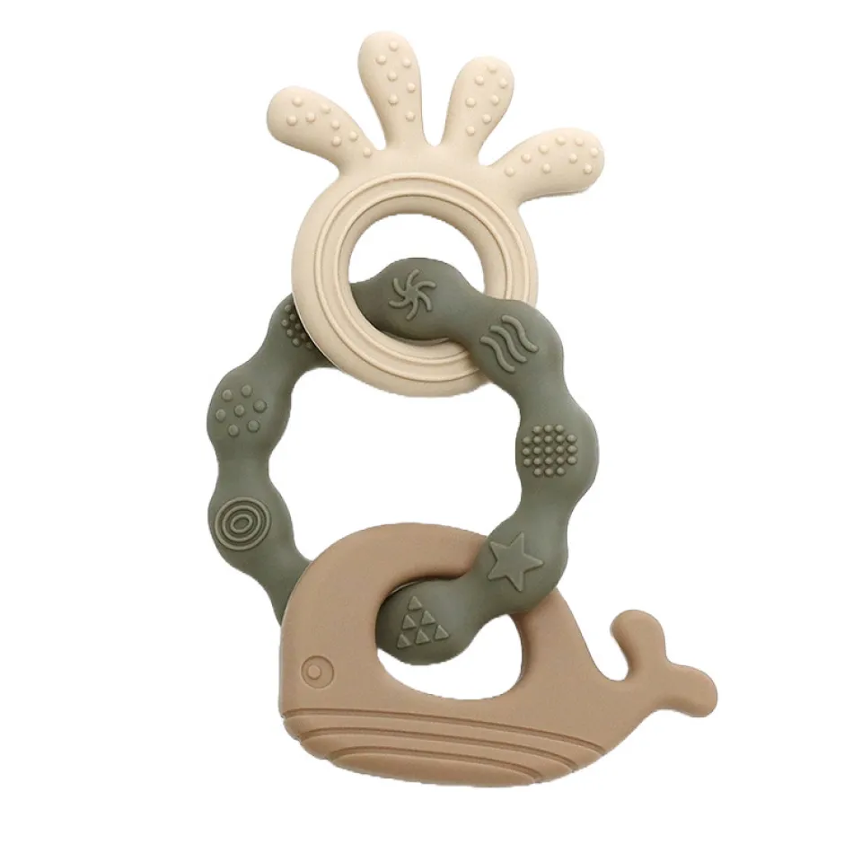 Bideranglen har forskellige konturer og blødhed som gør det behageligt for barnet at bide i og lege med.