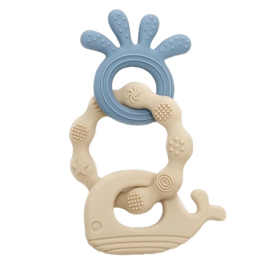 Bideranglen har forskellige konturer og blødhed som gør det behageligt for barnet at bide i og lege med.
