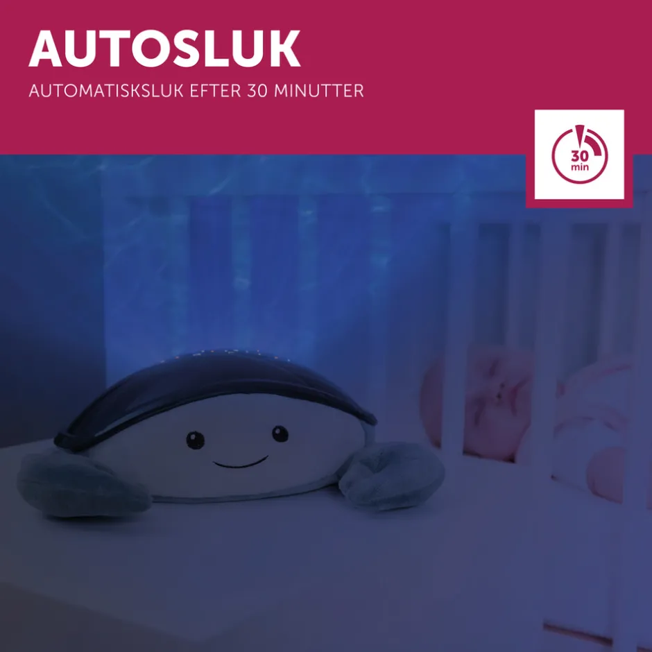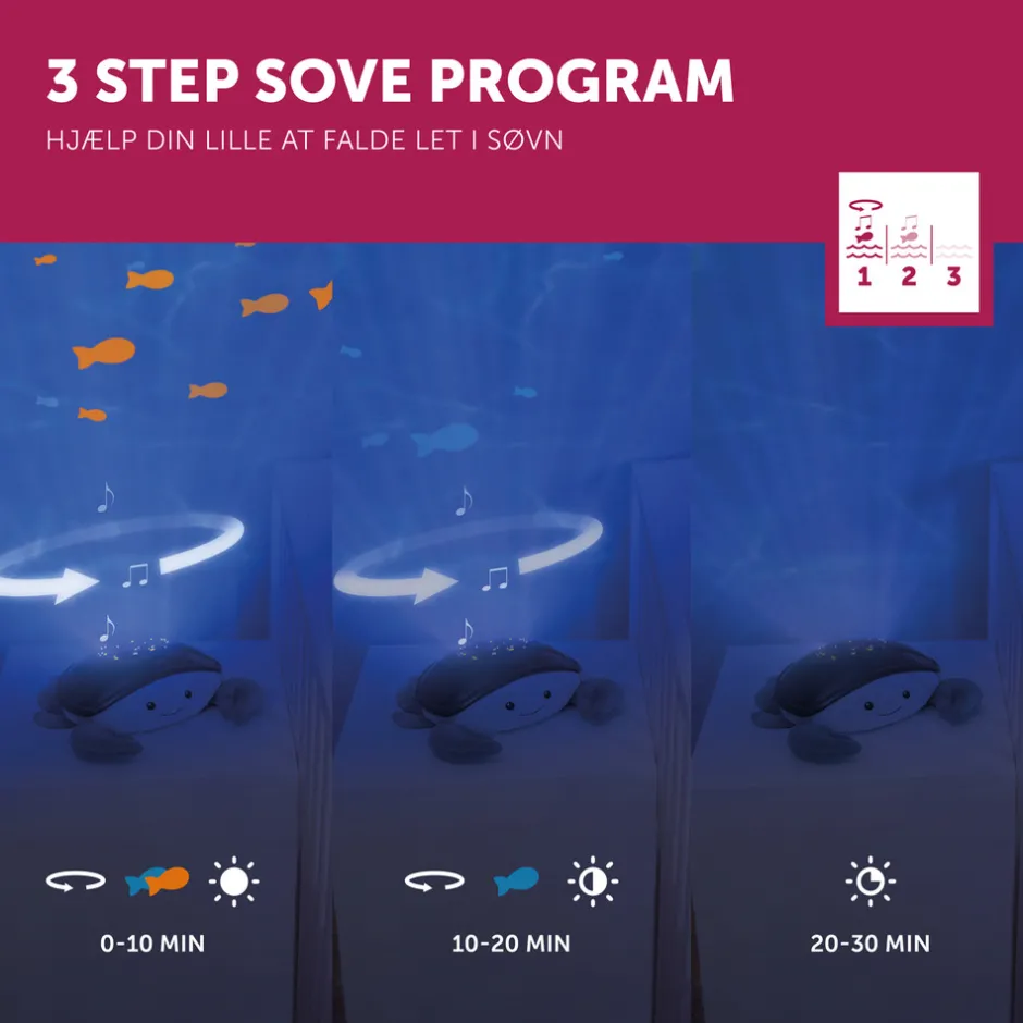 Omdan dit barns værelse til en magisk undervandsverden med bølger i bevægelse og fisk, der svømmer rundt i værelset, mens barnet lytter til afslappende havlyde.