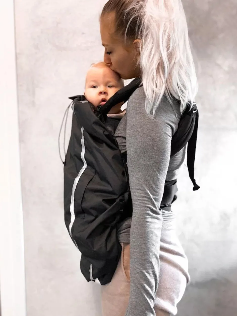 Cover Me er en forbedret version af det populære regnslag og stormbetræk, som nu kan anvendes både på vogn og bæresele. Med praktiske knapper og snøring i siden kan coveret let justeres i længden og strammes tæt omkring barnet. Forsiden er udstyret med to lommer, der gør det nemt at mærke og holde om barnet.