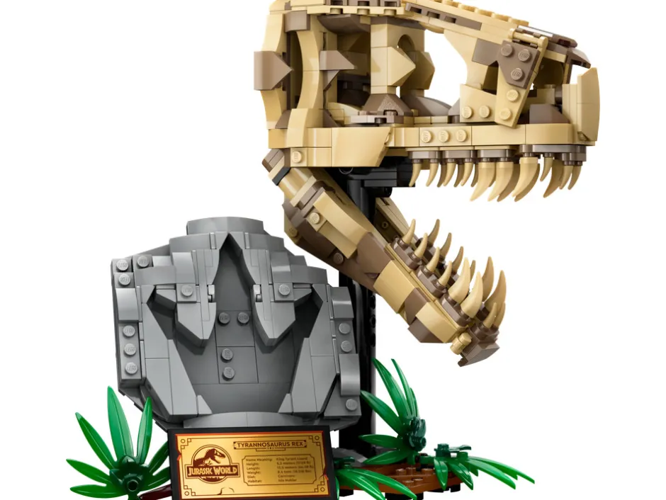 Saml dit eget T. rex-kranium 76964 og udstil det! Dyk ned i dette LEGO® Jurassic World sæt, og skab din egen version af den mægtige dinosaurs hoved. Kraniet har en bevægelig kæbe, der kan åbnes eller lukkes. Der er også et “fossilt” fodaftryk og et skjult stykke “rav”, som kan føjes til udstillingen. Afslut modellen med en infoplade. Du kan tage kraniet af standen og ændre din udstilling når som helst.